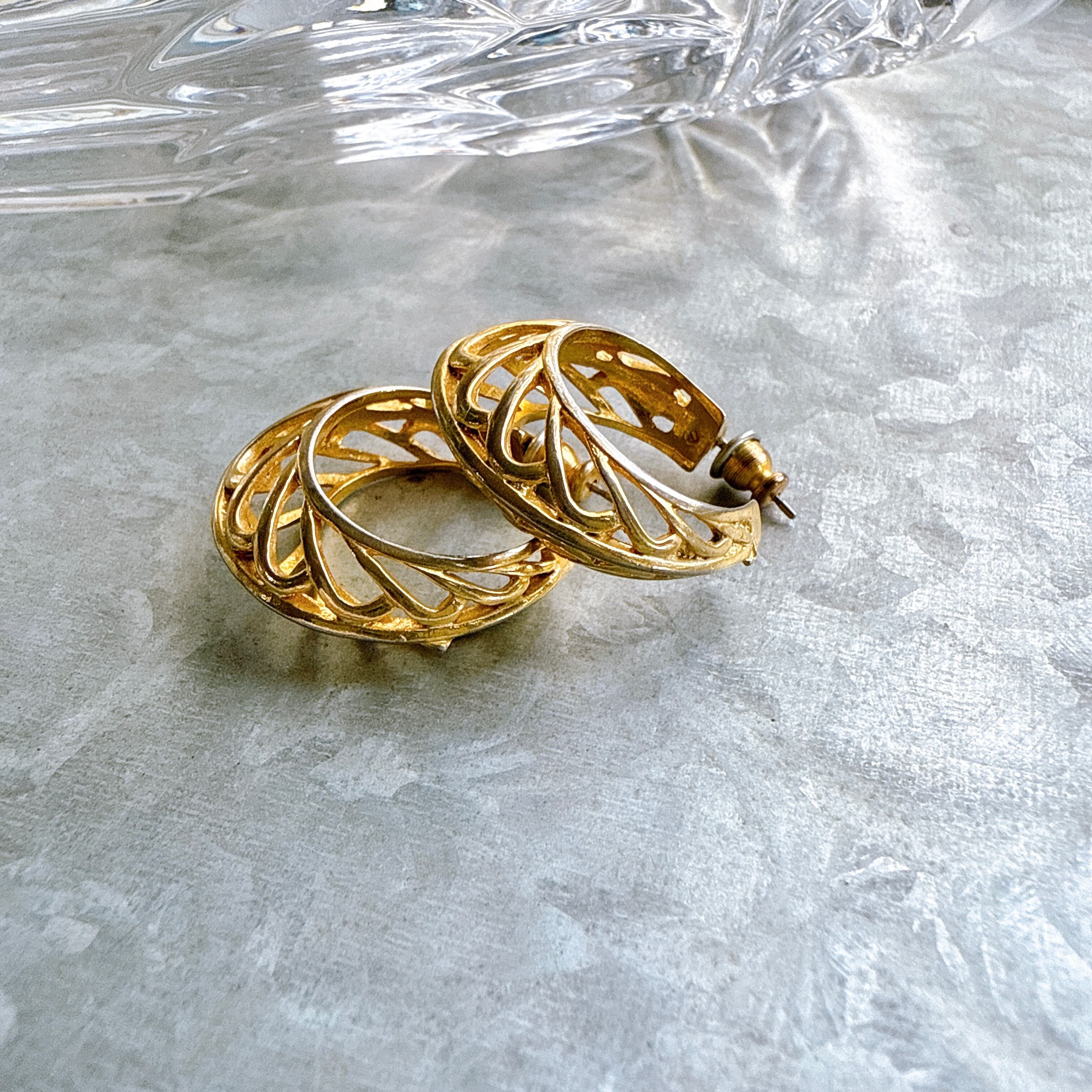 程よいサイズ感で品の良さも感じさせ、現代の様々なシーンの着こなしに映え、普段の着こなしにレトロモダンなアクセントを残す素敵なヴィンテージピアスです。
