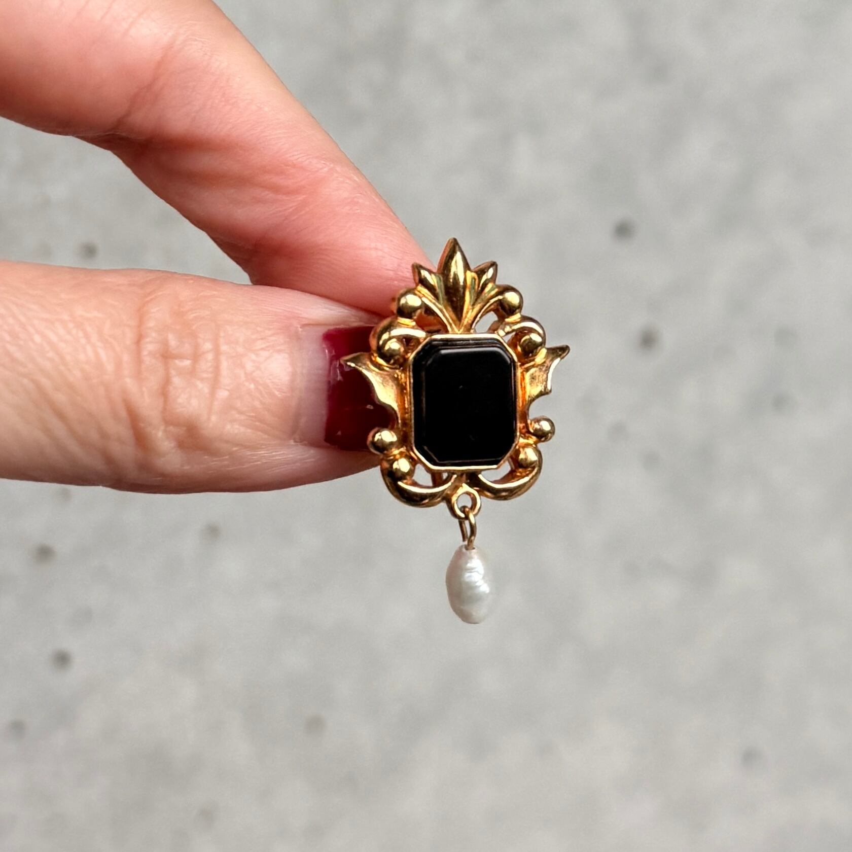 ブラックスクエアのアクリルと小さなパールが見事に組み合わさったエレガントなスタイルが、着こなしに華やかさをプラスします。