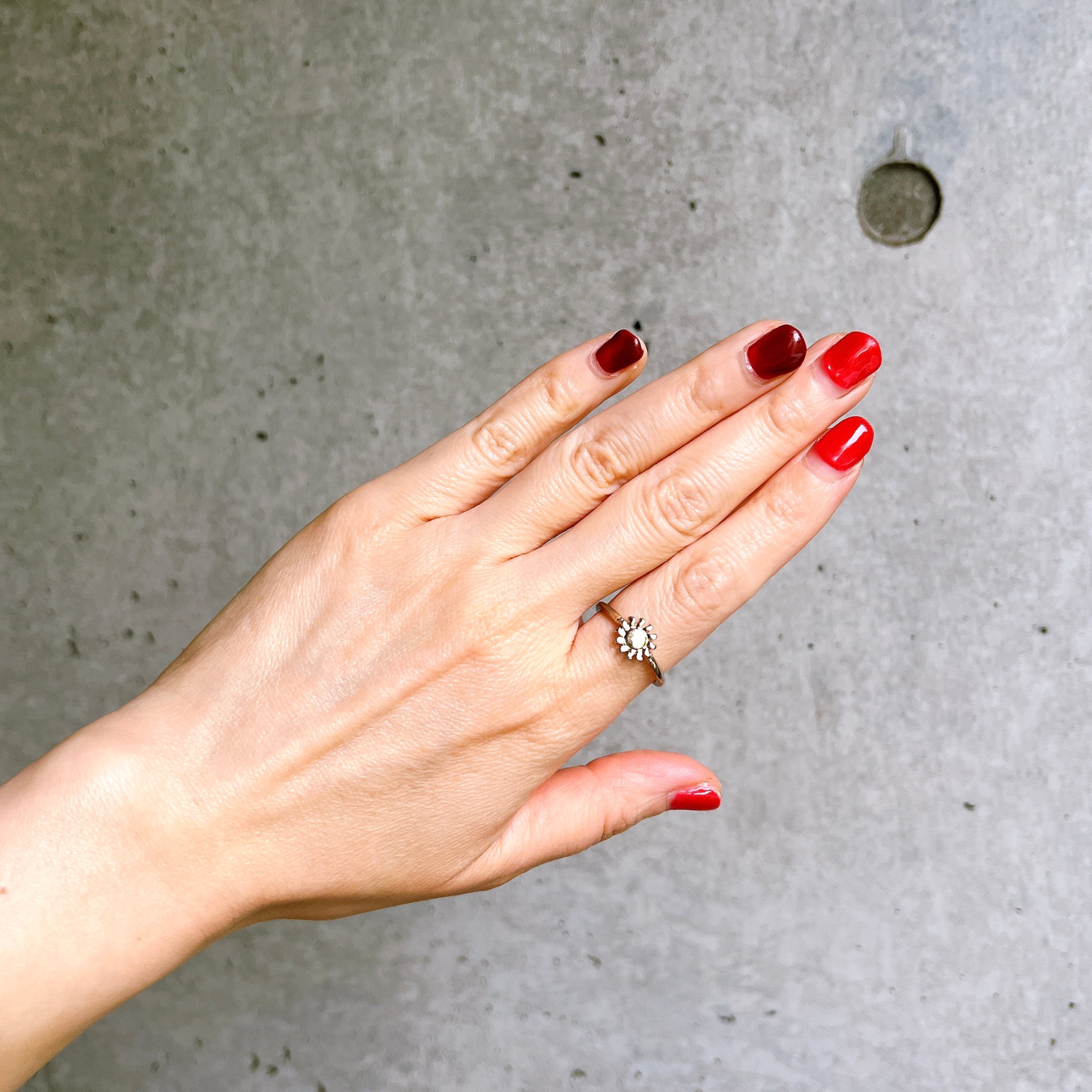 照りつける太陽のような揺らめく花びらをイメージできるデザイン。