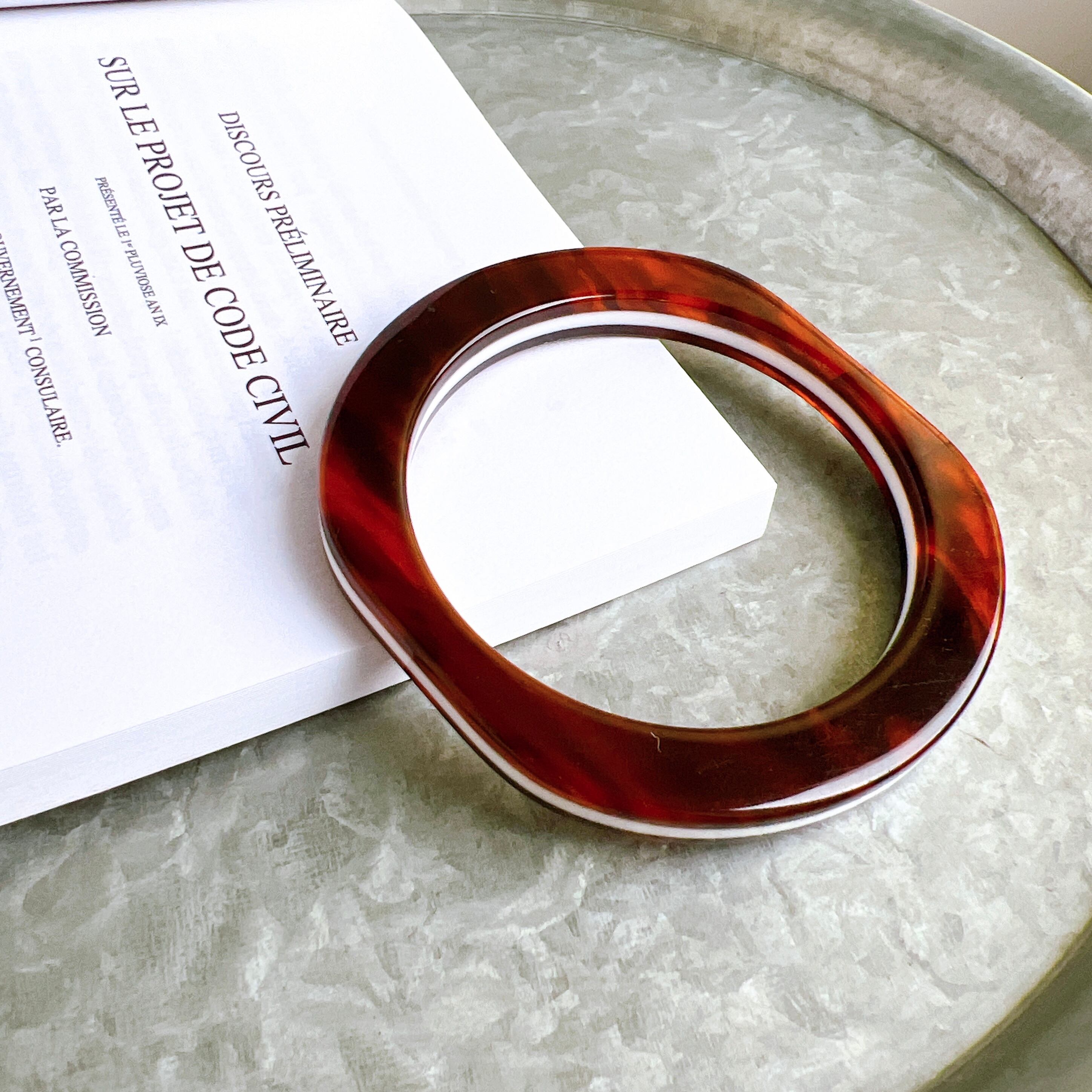 ヴィンテージならではの唯一無二の存在感が魅力的で、現代のさまざまなシーンの着こなしに映えます。身につけることで、モダンでエレガントな雰囲気を纏わせる素敵なヴィンテージバングルです。