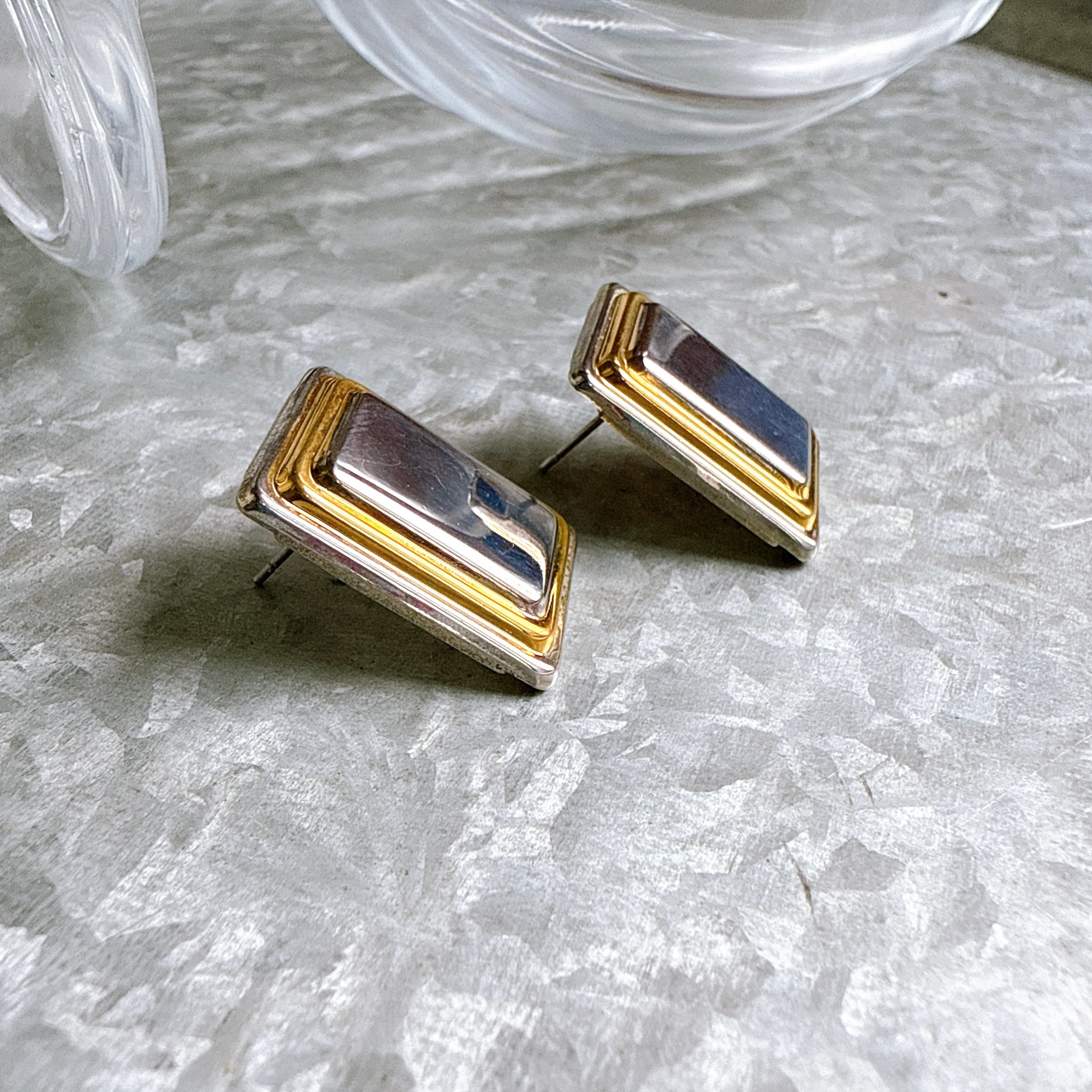P673-【Stella & Dot】 ヴィンテージピアス U.S.A. 2000s Silver Tone Rectangular Plate Pierced Earrings | eslup_boutique
