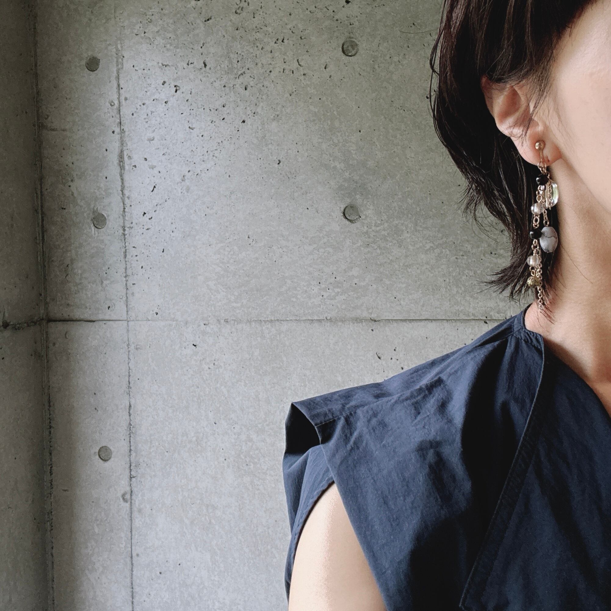 揺れ動くチェーンとビーズがお顔周りを華やかに演出し、身につけることで上品でシックな雰囲気を纏わせてくれる素敵なヴィンテージイヤリングです。