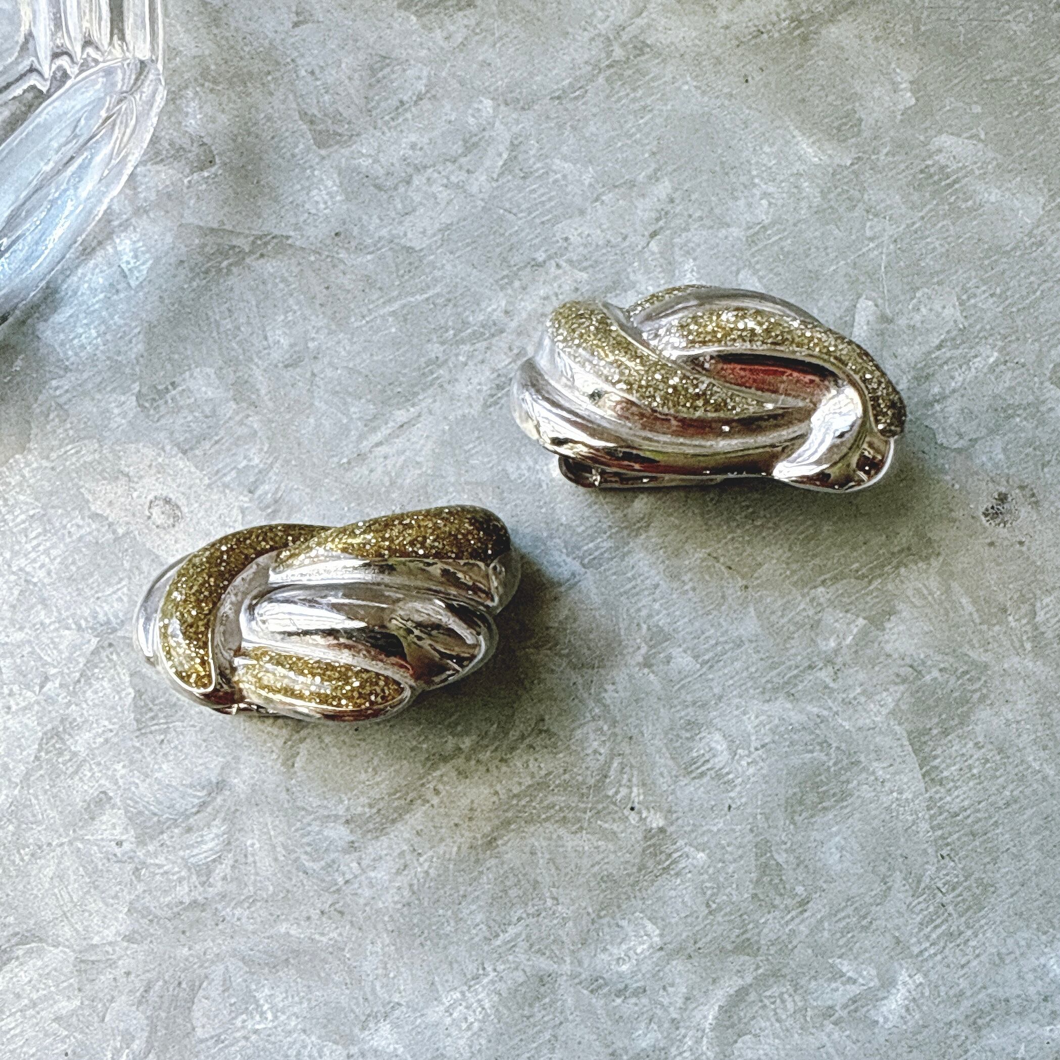 シルバートーンをベースにゴールドグリッターがアクセントになったスワールイヤリング。