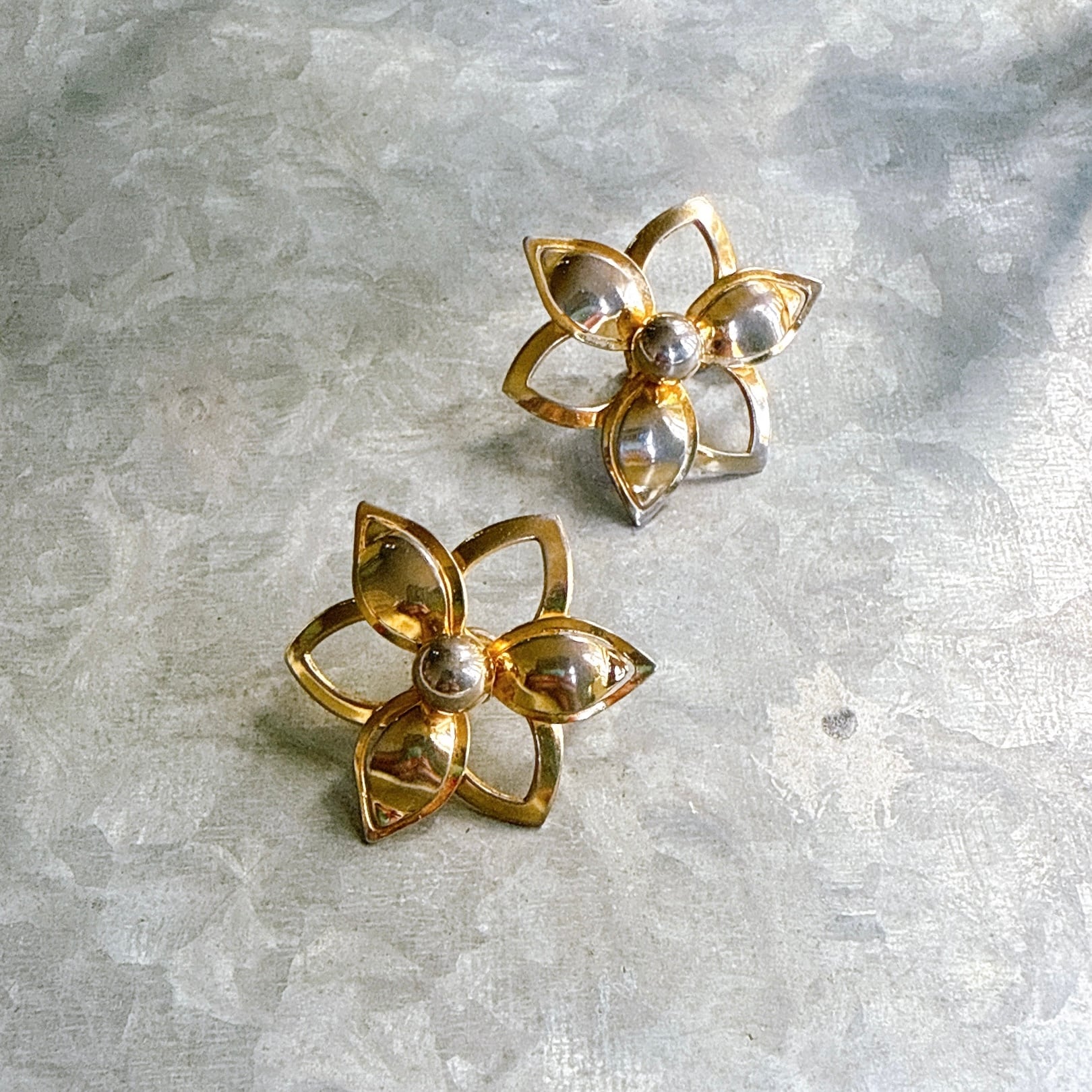 YS91-【 Sarah coventry 】サラコベントリー・ヴィンテージイヤリング 1961 "Demure Earrings" Gold Tone Floral | eslup_boutique