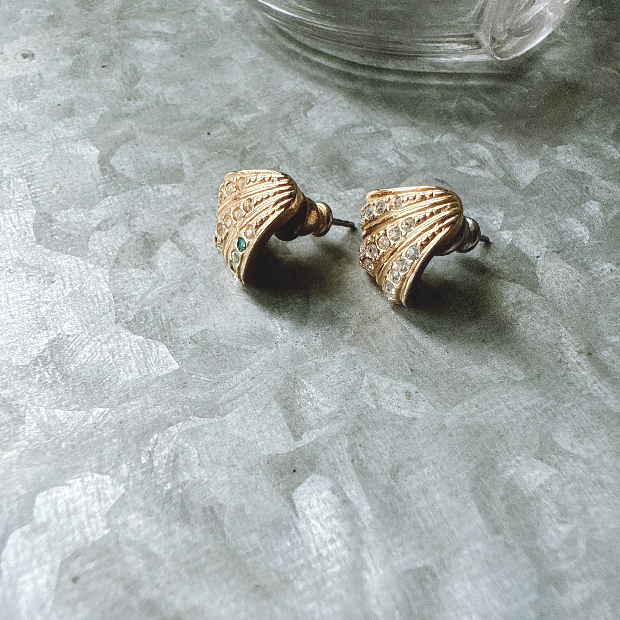 ラインストーンが煌めくゴールドトーンシェルモチーフピアス。