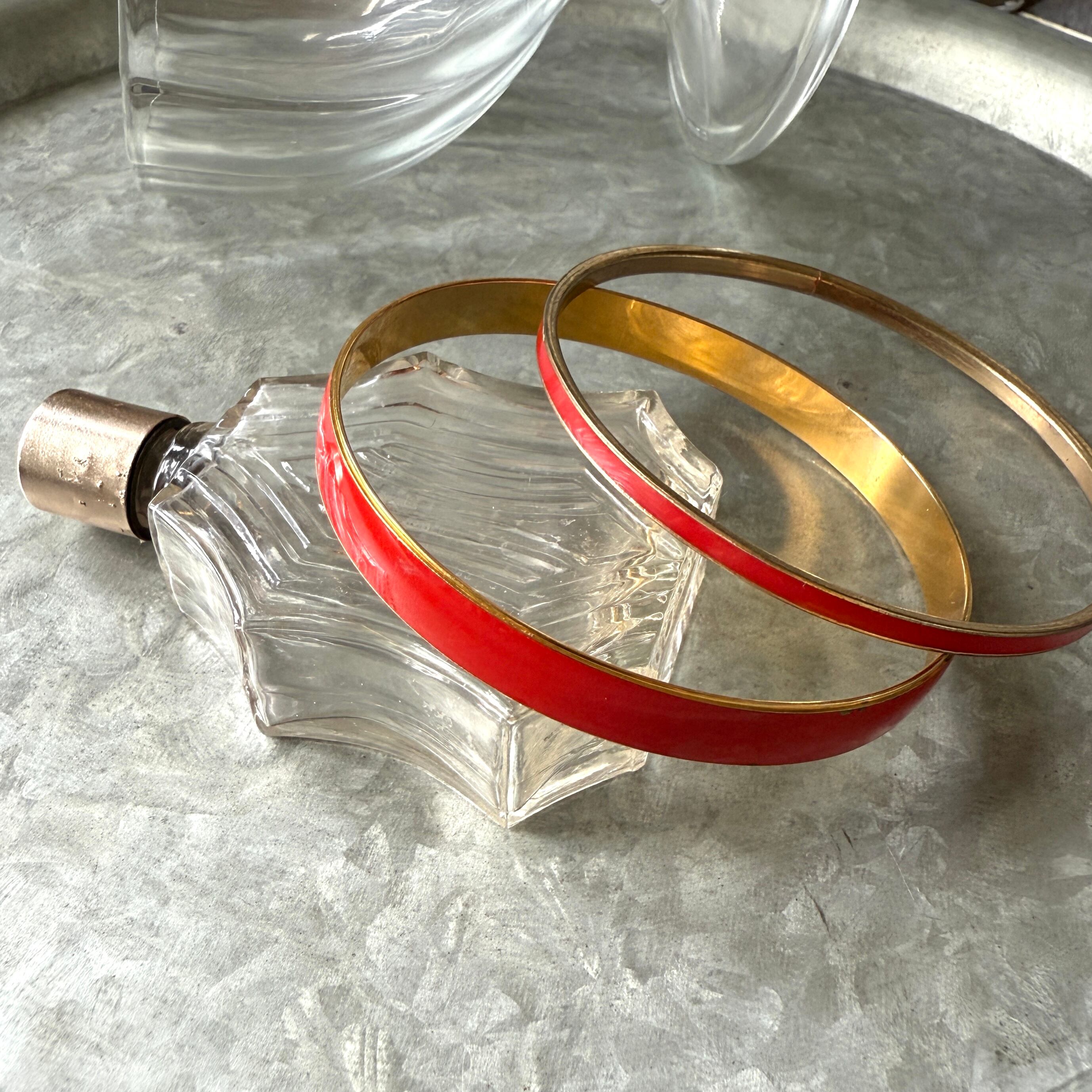 ゴールドトーンをベースに赤いエナメルペイントされたブレスレット。