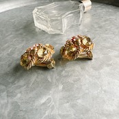 Y1174-【ERICA LYONS】エリカ・ライオンズ ヴィンテージイヤリング 1980s Gold Tone Pink and Amber Beaded Floral Earrings | eslup_boutique