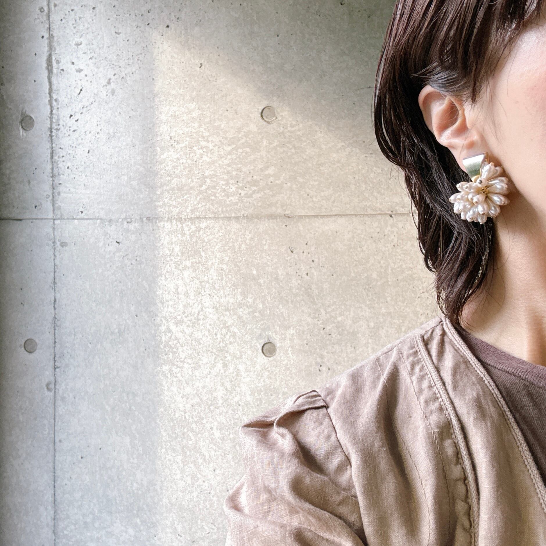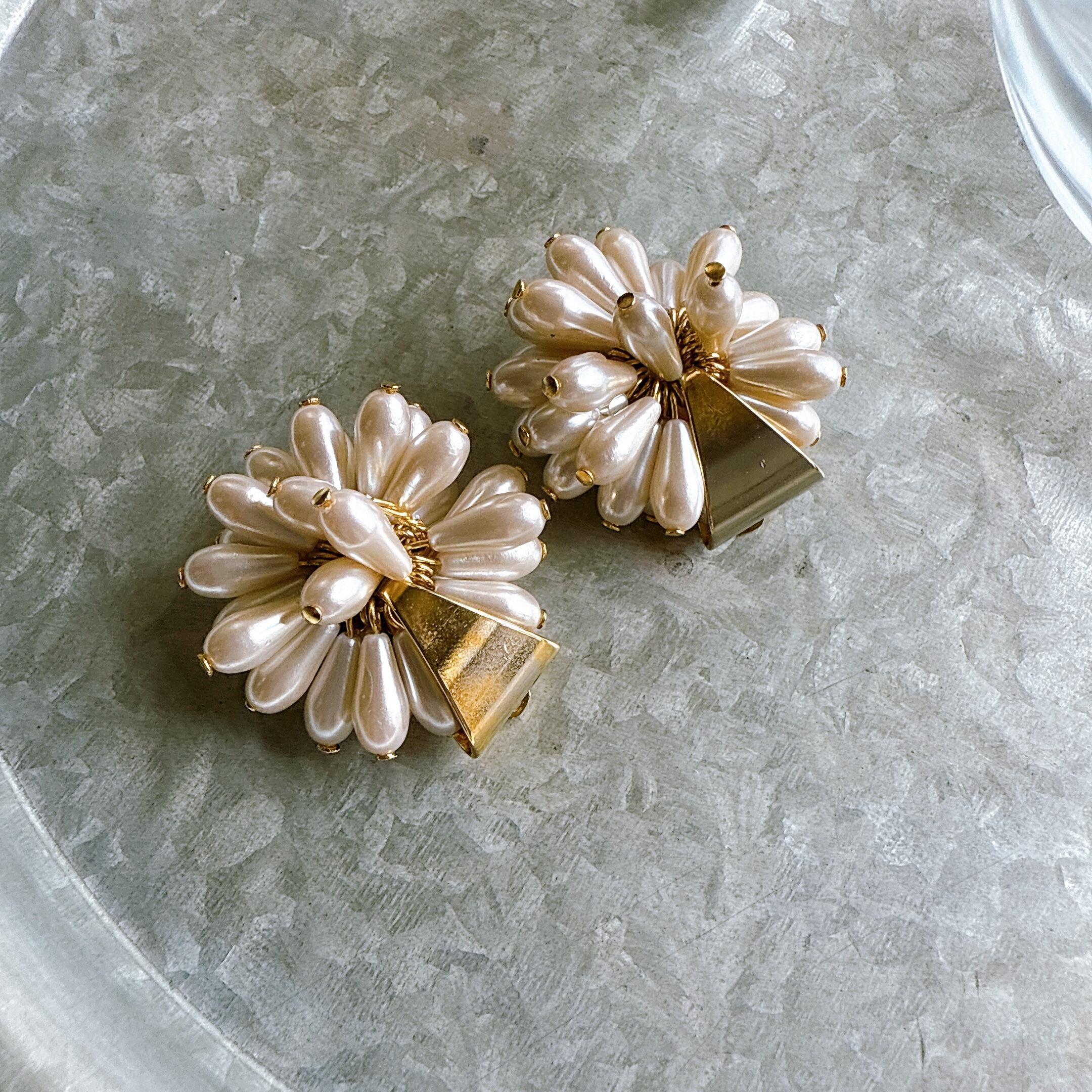 ドロップパールのクラスターイヤリング。