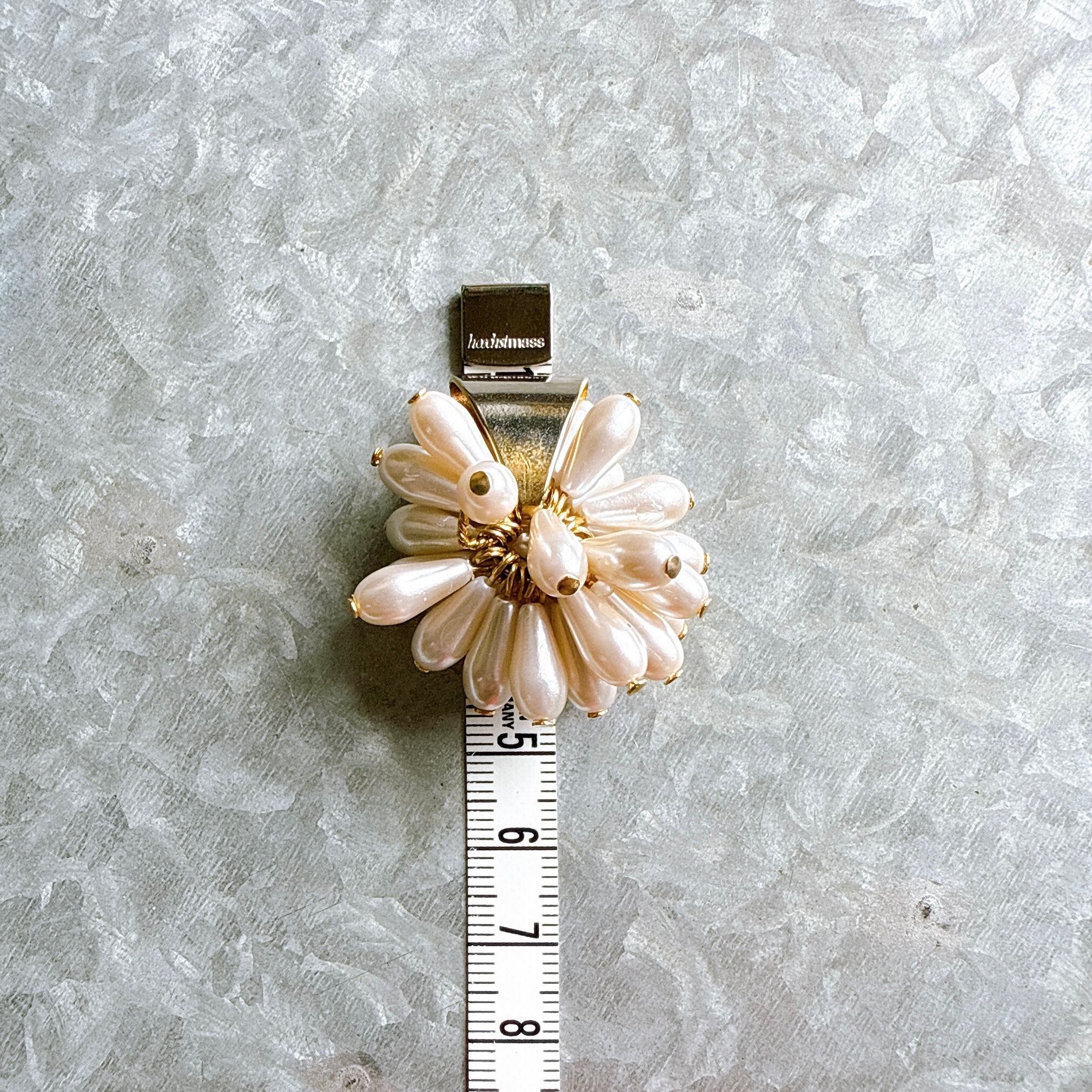 ゴールドトーンのクリップがアクセントに、大ぶりのサイズ感で上品でありながらレトロな個性を放ちます。