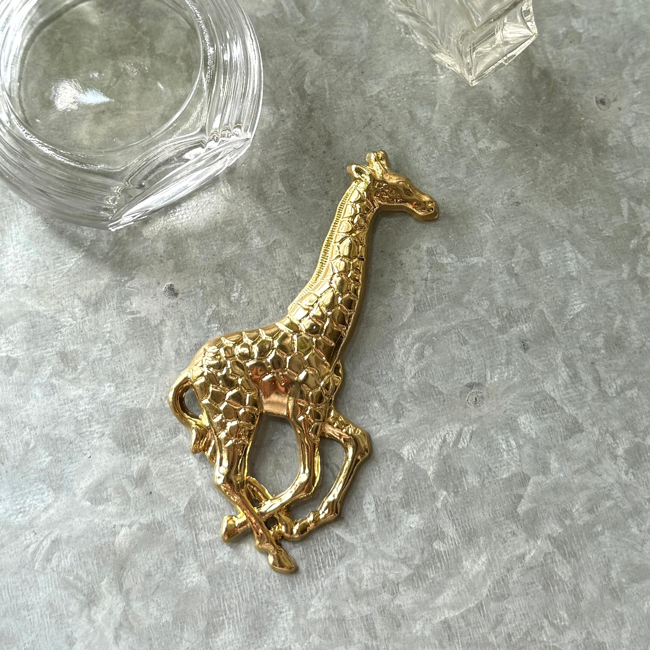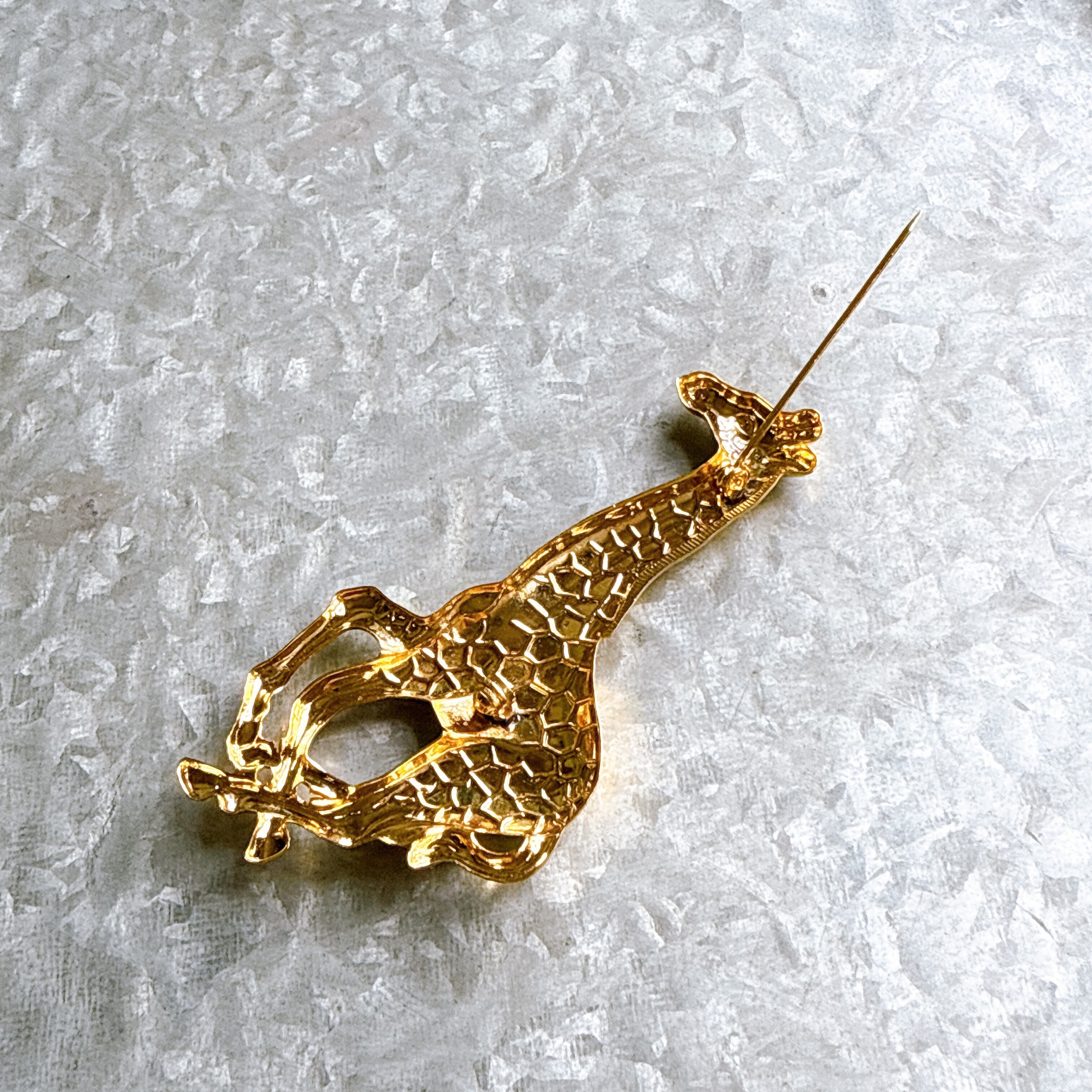 ゴールドトーンのジラフモチーフブローチ。