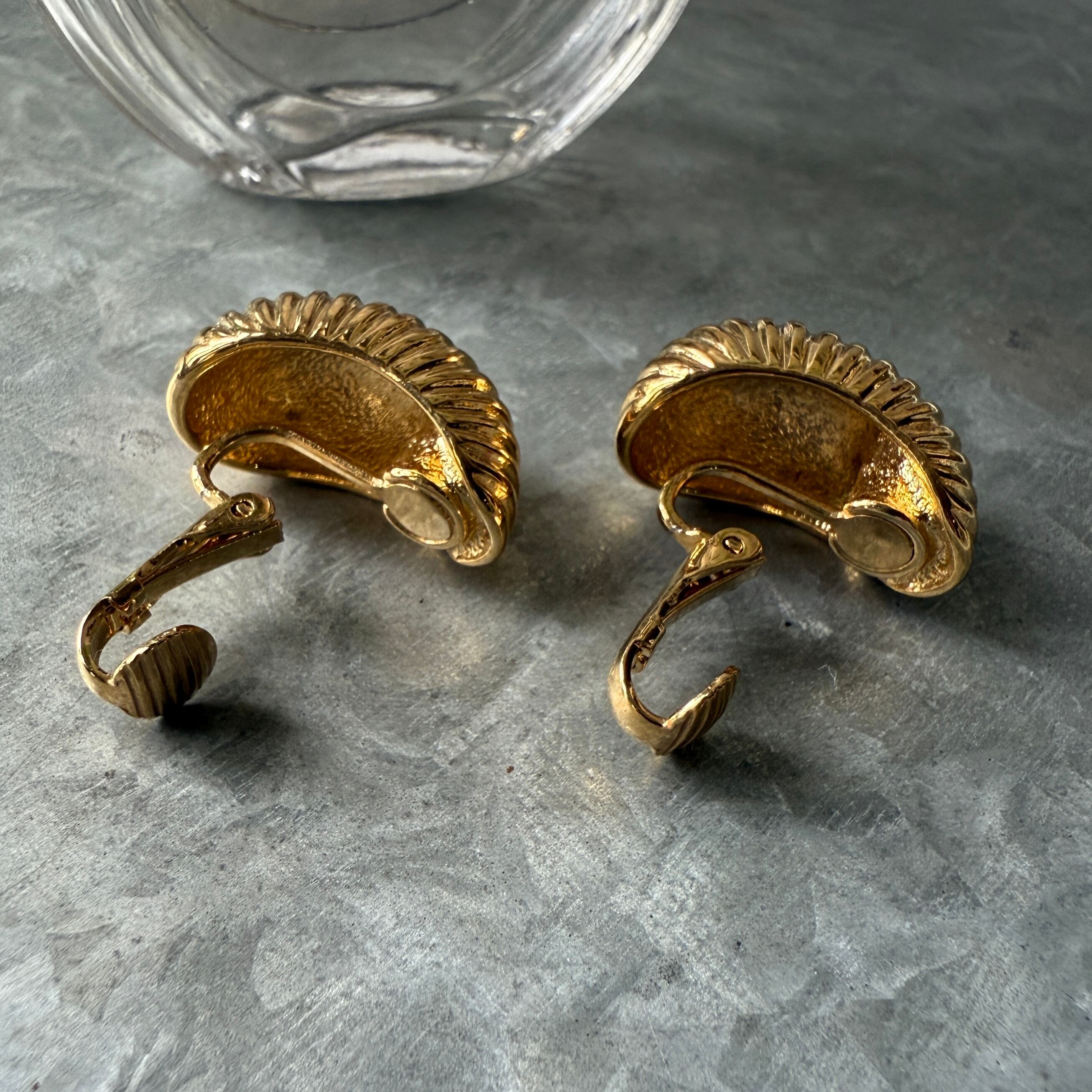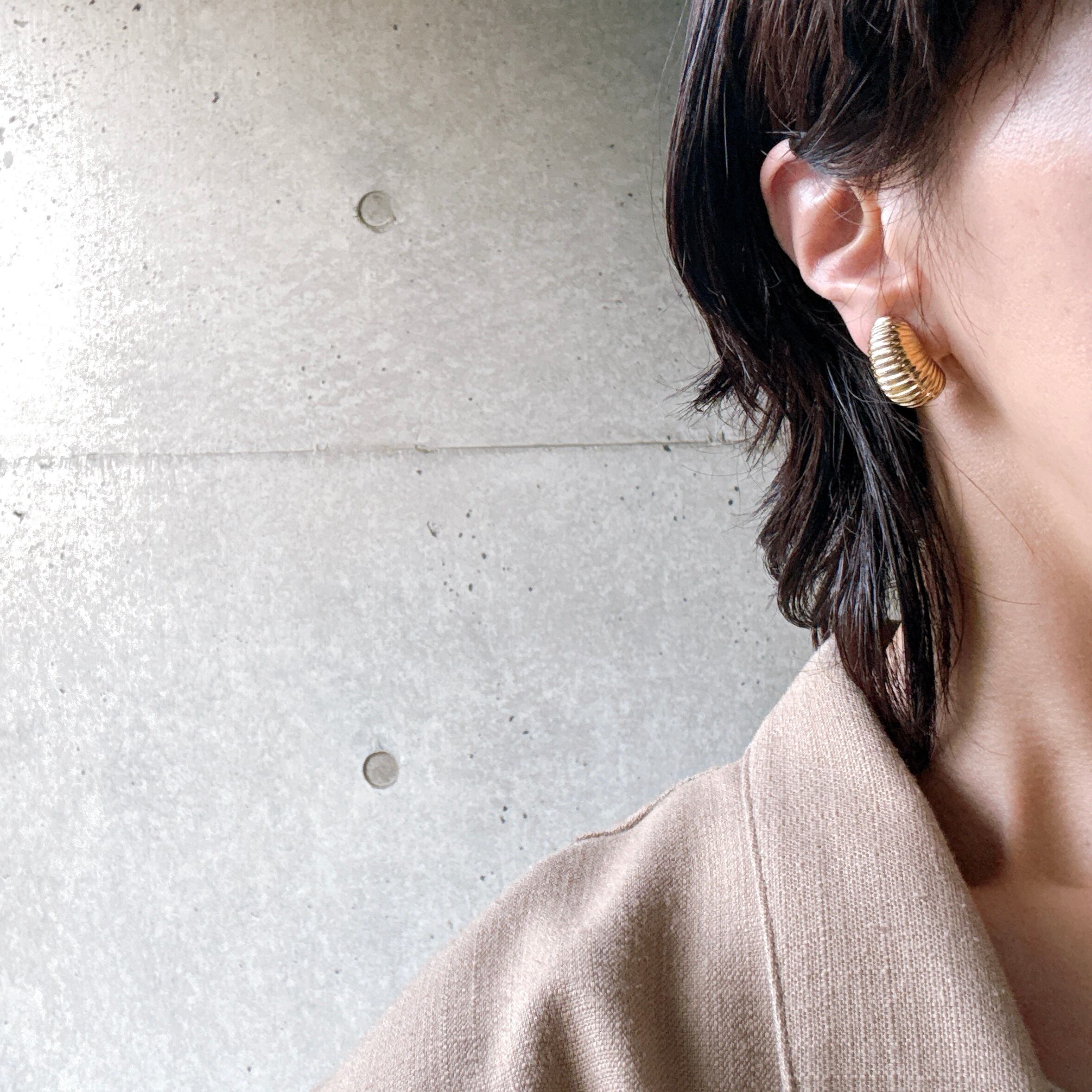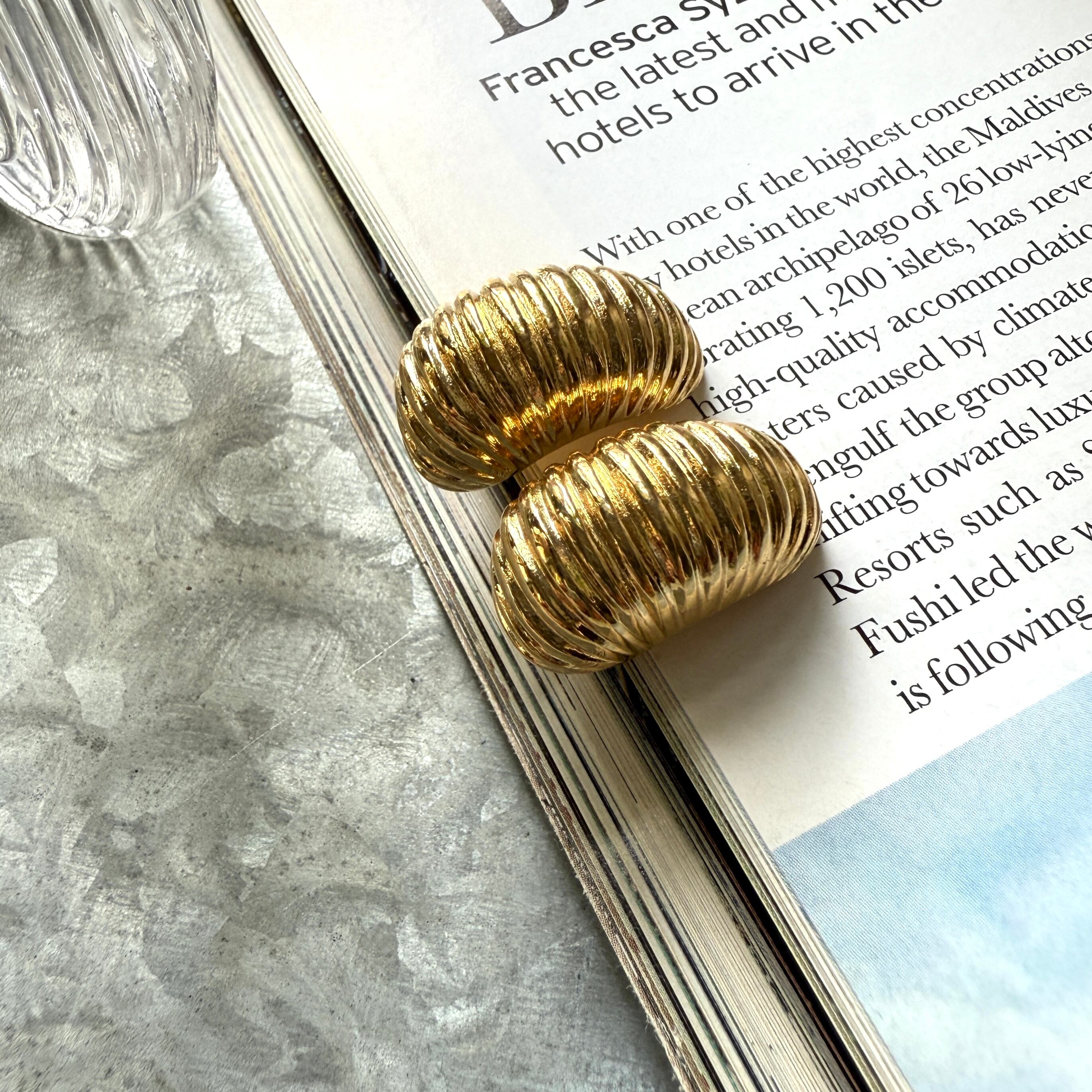 ゴールドトーンのリブテクスチャーハーフフープイヤリング。
