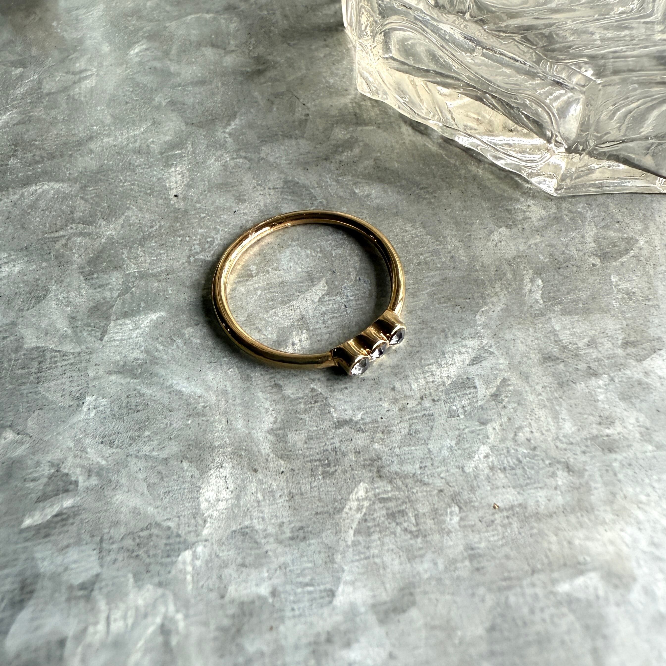 小さなラインストーンがさりげなく煌めきを放ち、華奢なリングとの組み合わせで、繊細で上品な印象を与えます。