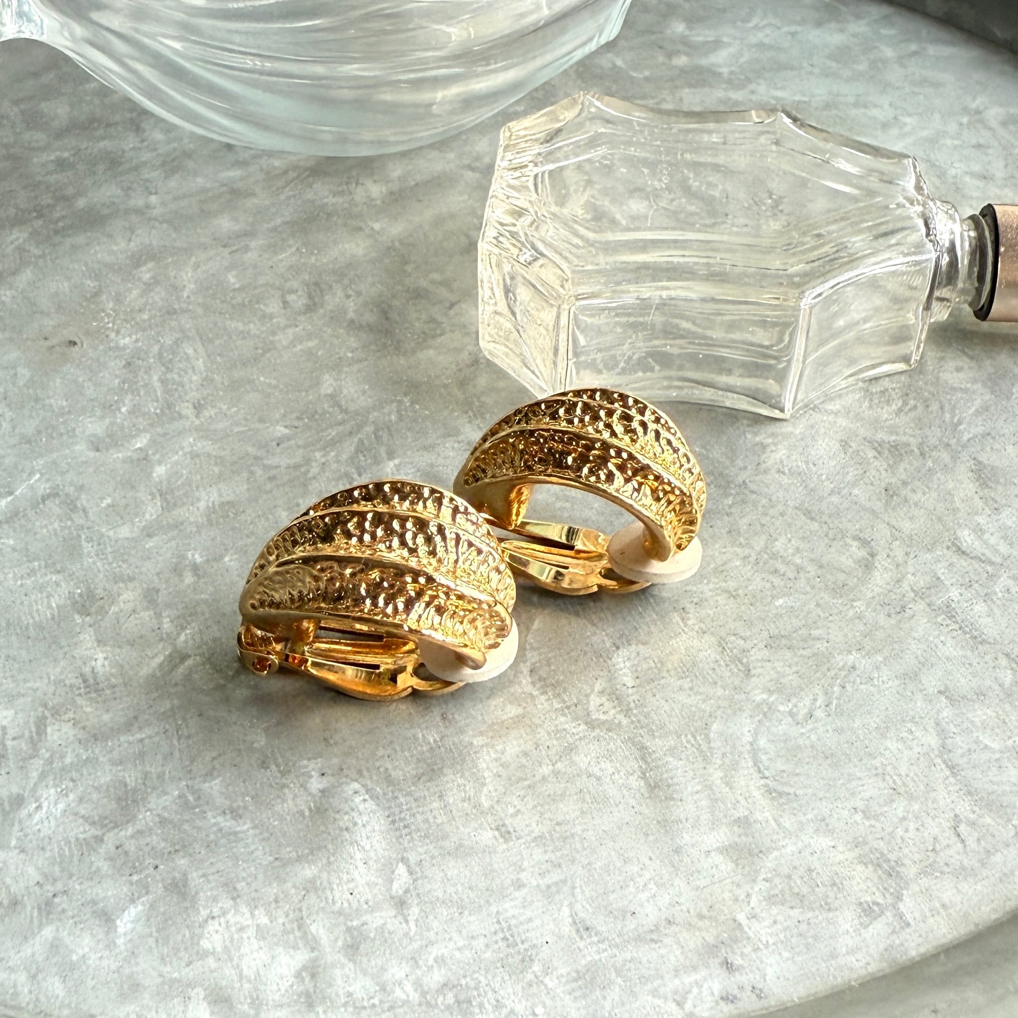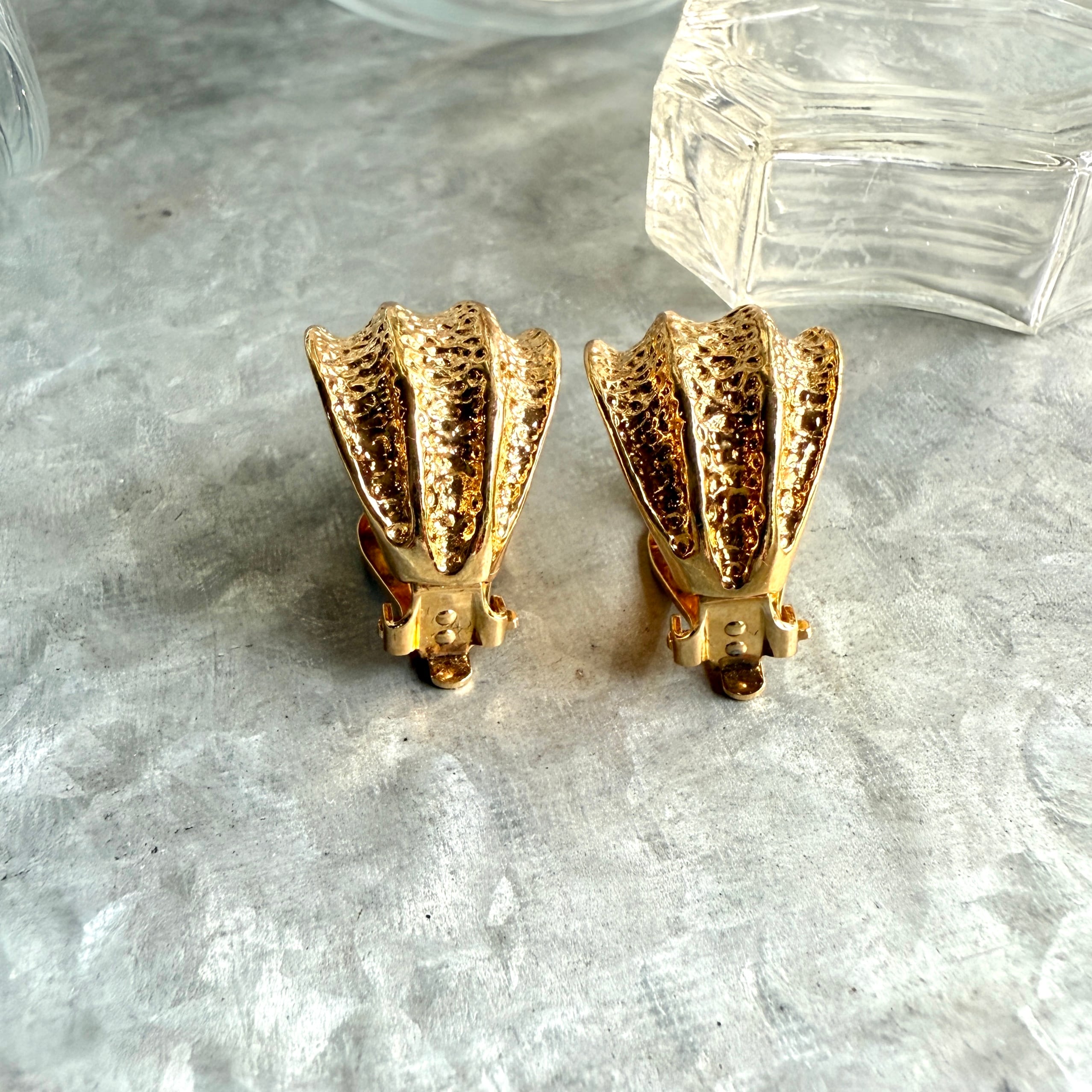 Y1189-ヴィンテージイヤリング U.S.A. 1980s Hammered Gold Tone Wavy Abstract Shape Clip-On Earrings
