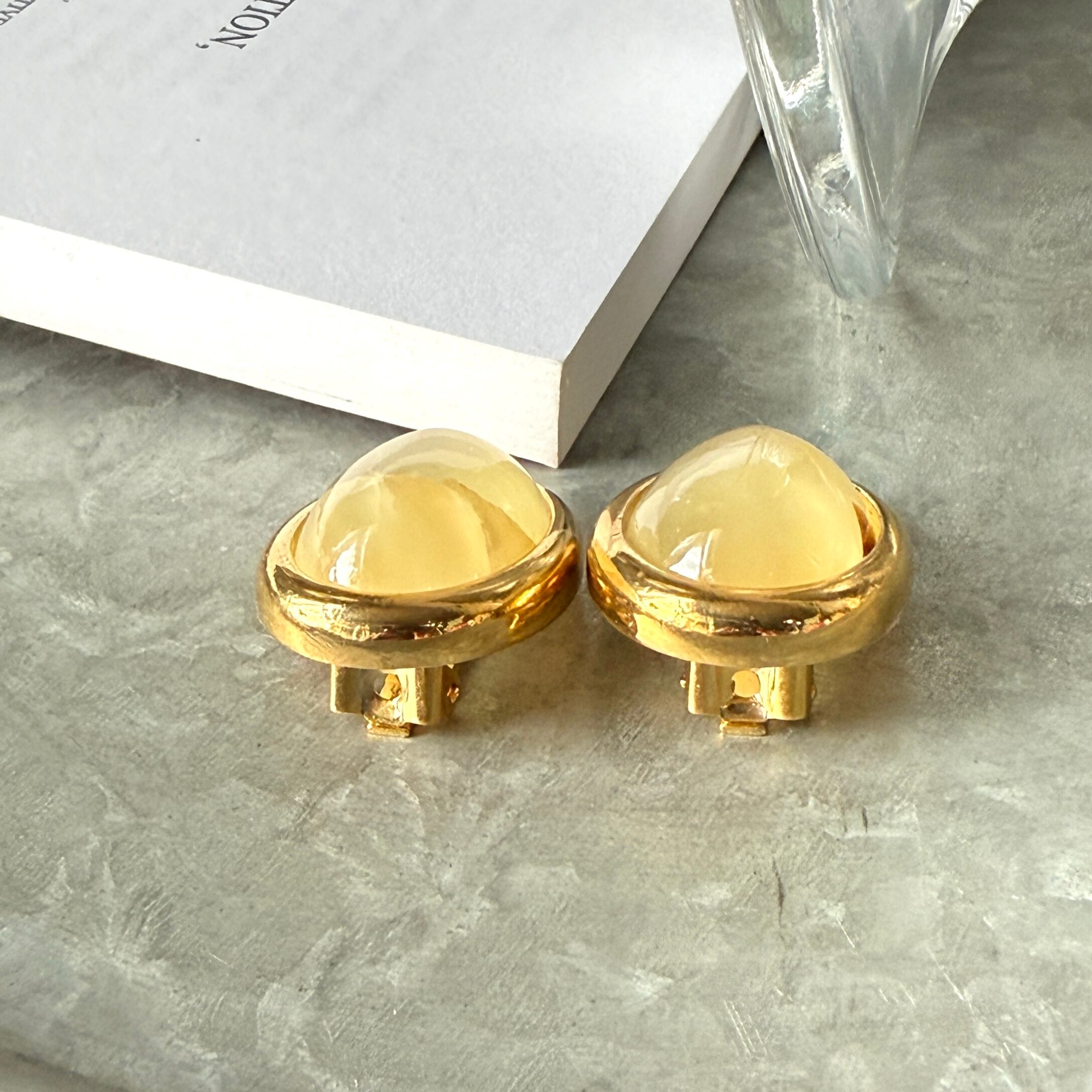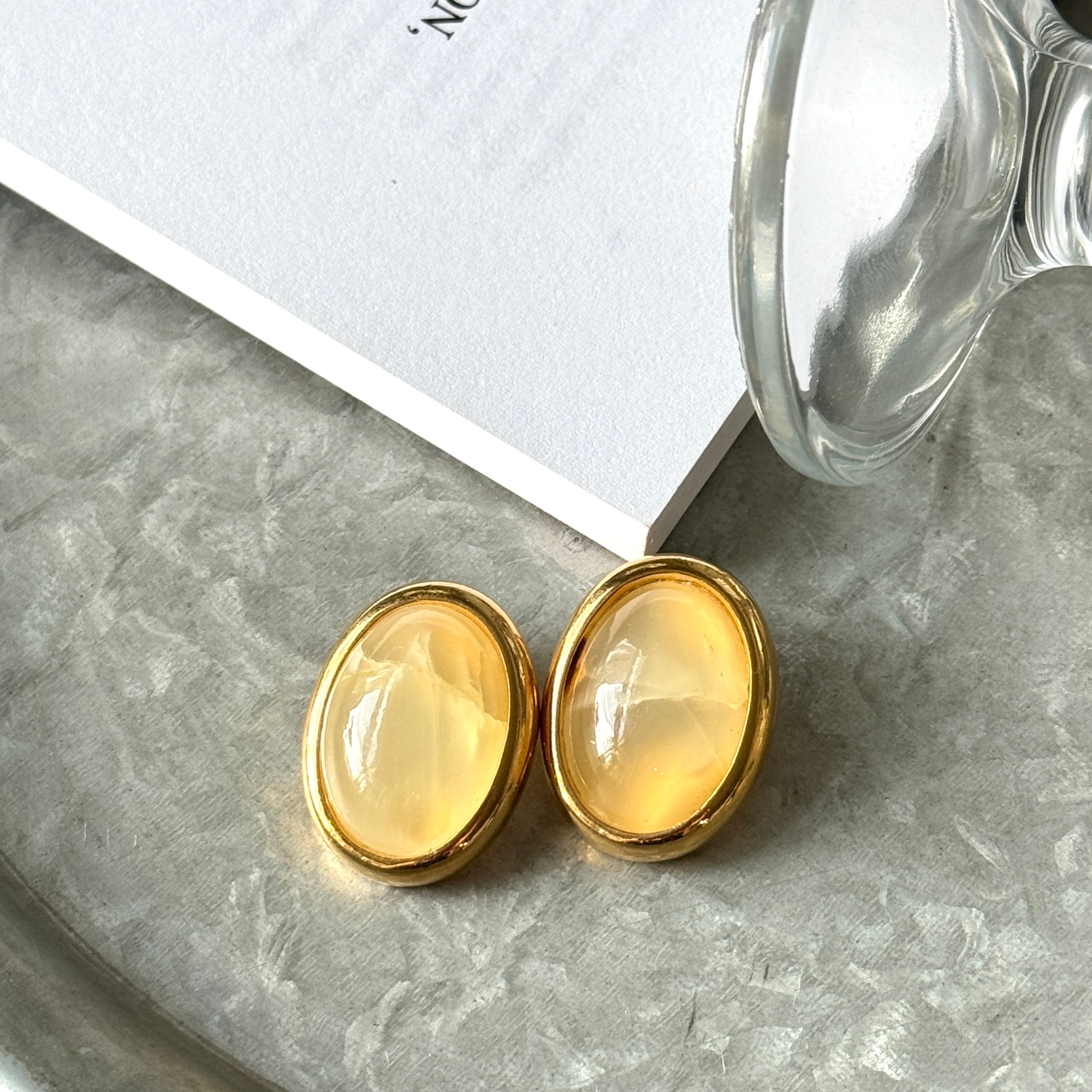 Y1191-【 David Grau 】デビッド・グロー ヴィンテージイヤリング U.S.A. 1980s Gold Tone Oval Pale Yellow Natural Stone Cabochon Earrings | eslup_boutique