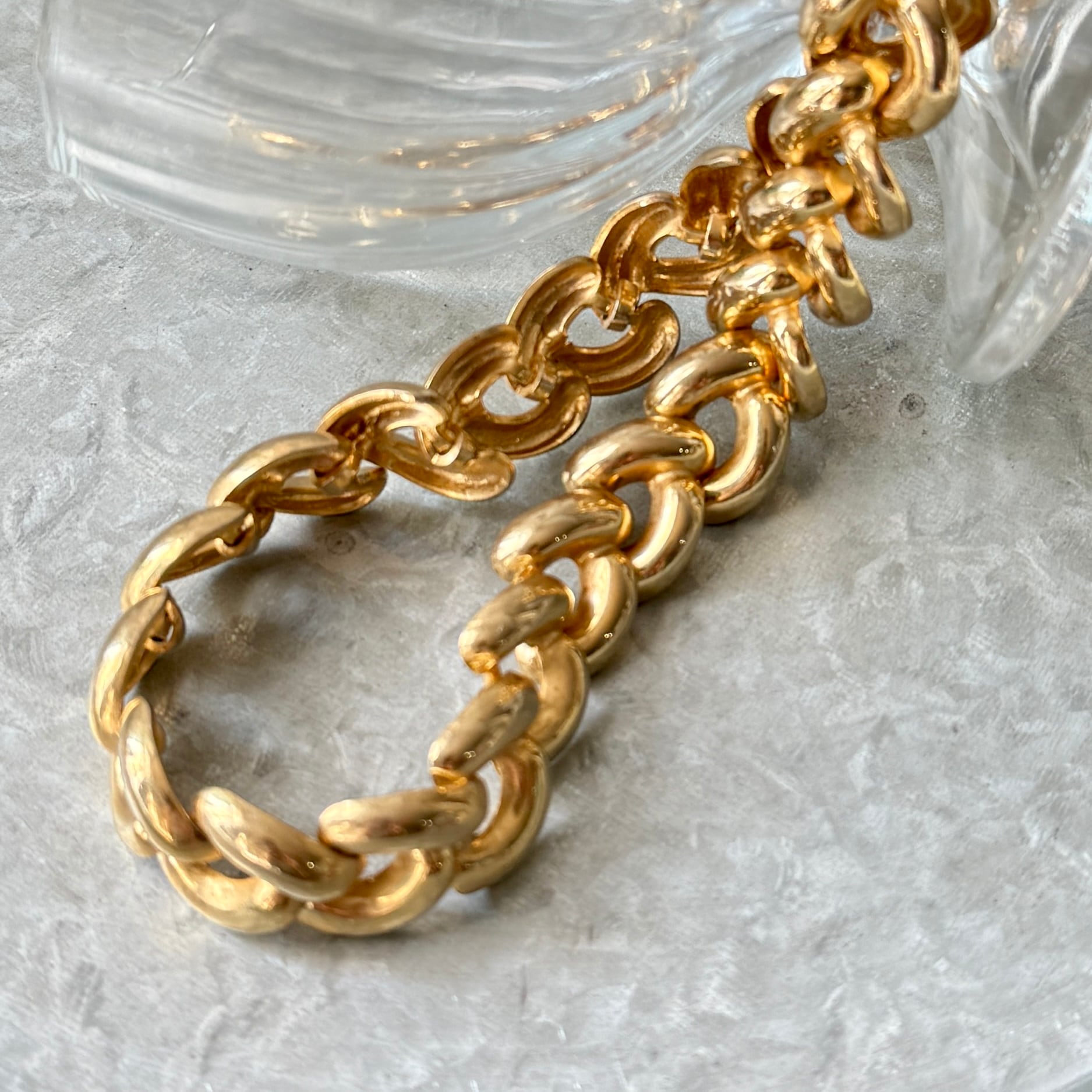 艶のあるテクスチャーで、ハート型のように三つ編みデザインのリンクチェーン。