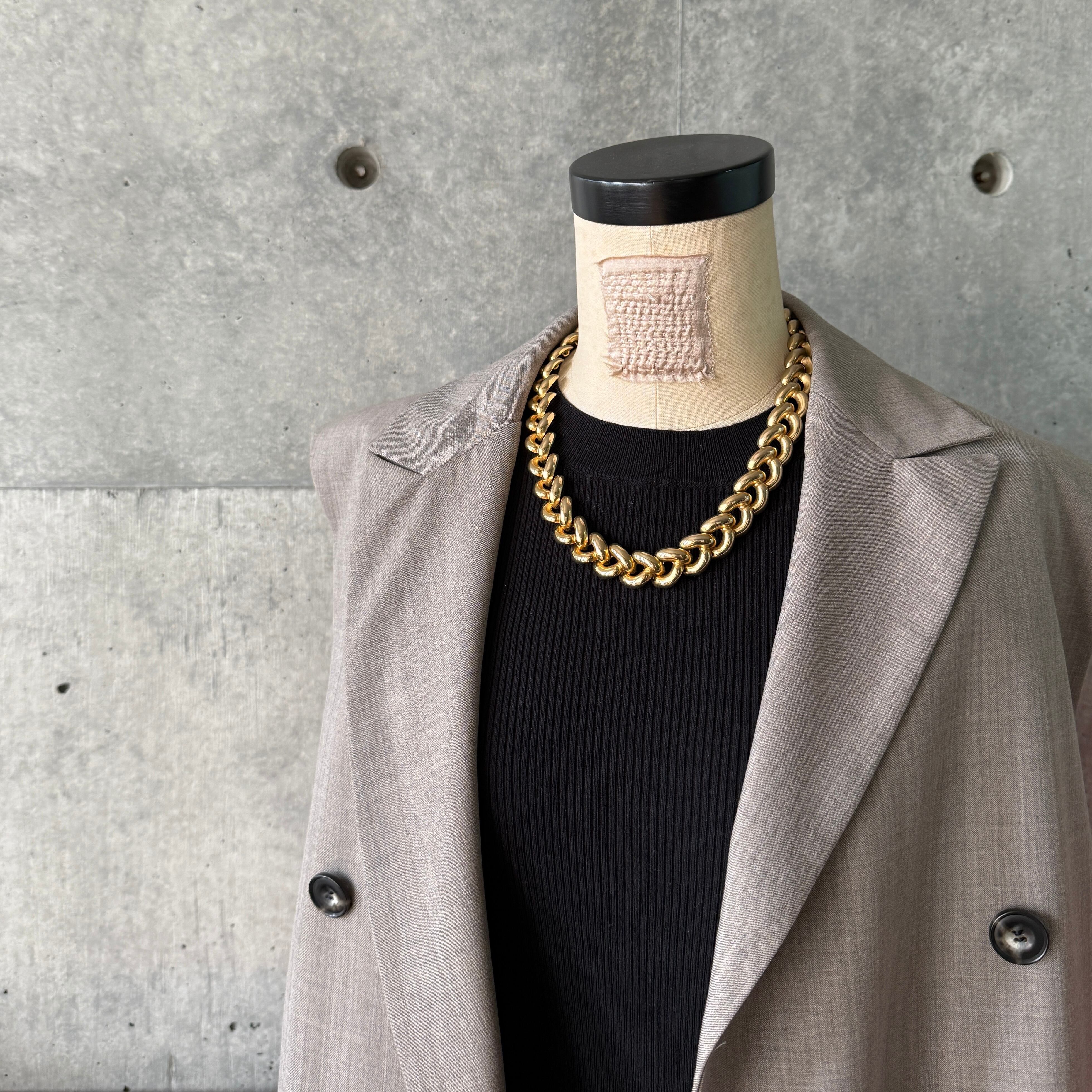 太めの存在感のあるチェーンネックレスで、身につけることで着こなしの主役級のアクセントとして一気に華やぎます。