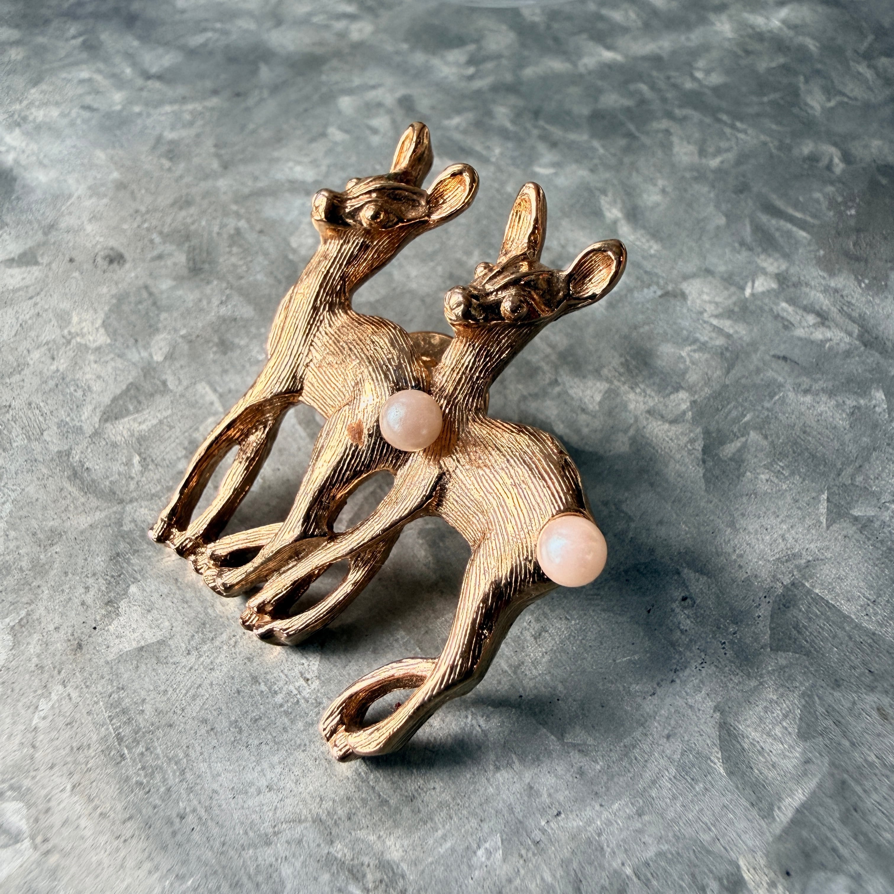 "Reindeer Friend"とタイトルのついた、2頭のトナカイをモチーフにしたブローチ。