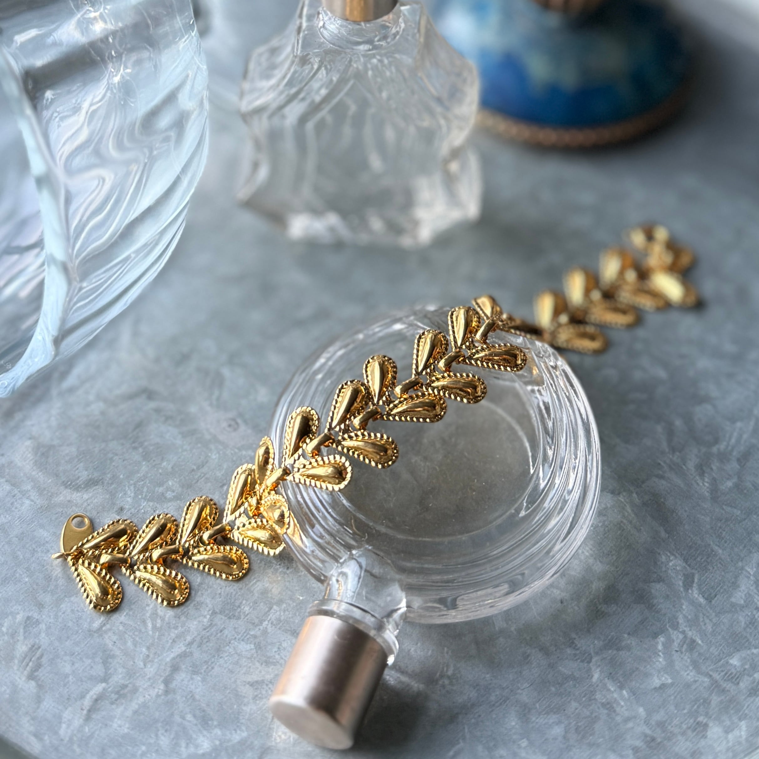 艶のあるテクスチャーの軽やかなパーツブレスレットで、手首にしなやかにフィットします。
