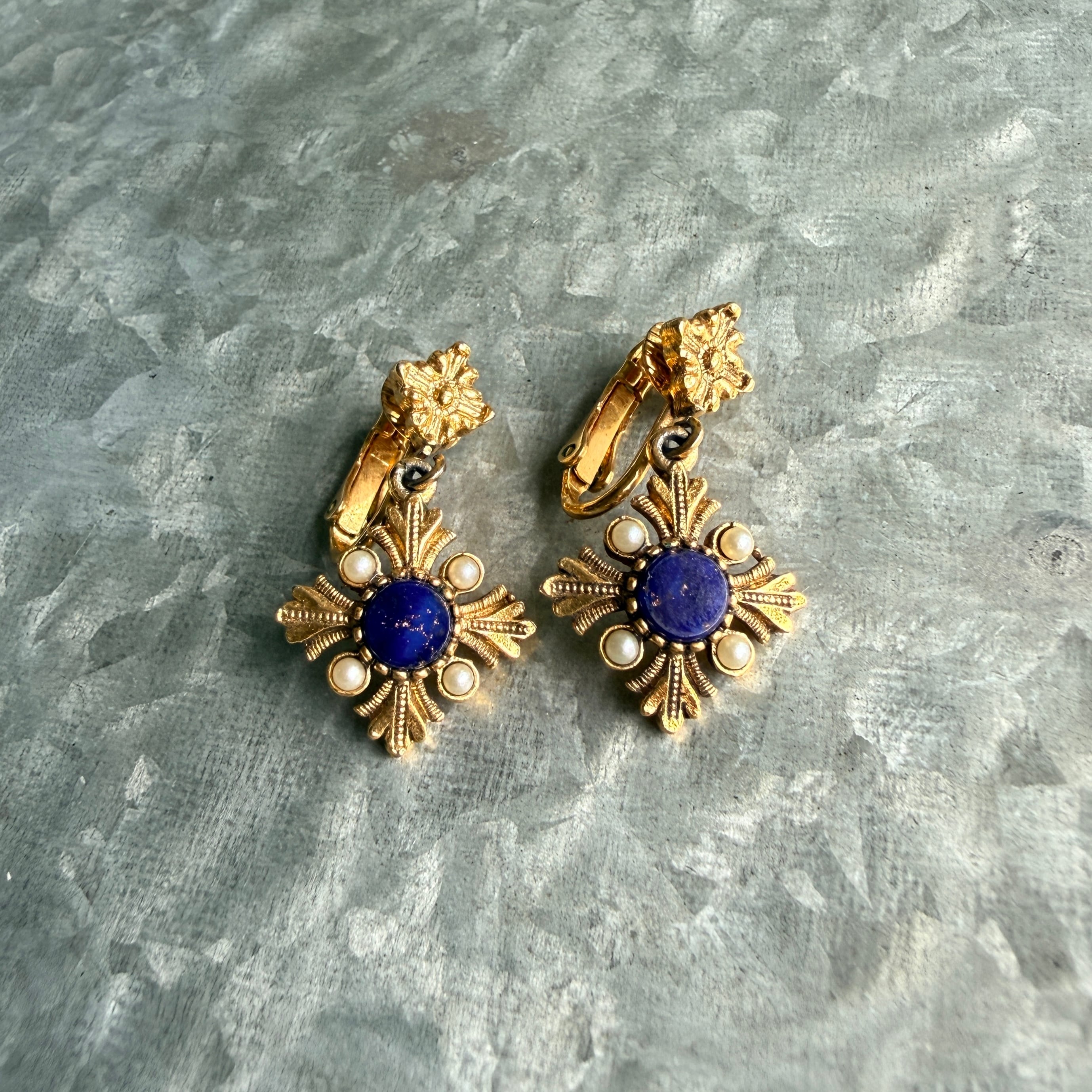 YA187-【 AVON 】エイボン・ヴィンテージイヤリング 1976 Viennese Collection Faux Lapis Lazuli and Pearl Clip Earrings | eslup_boutique