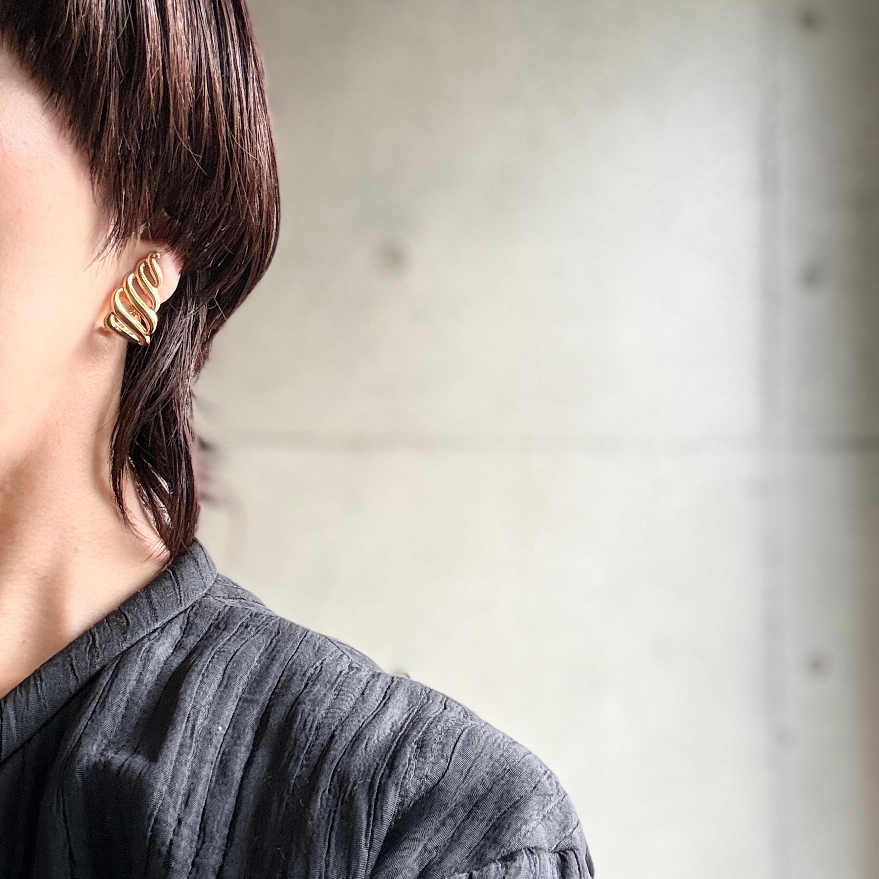 ウェイブデザインが特徴的なハーフフープイヤリング。