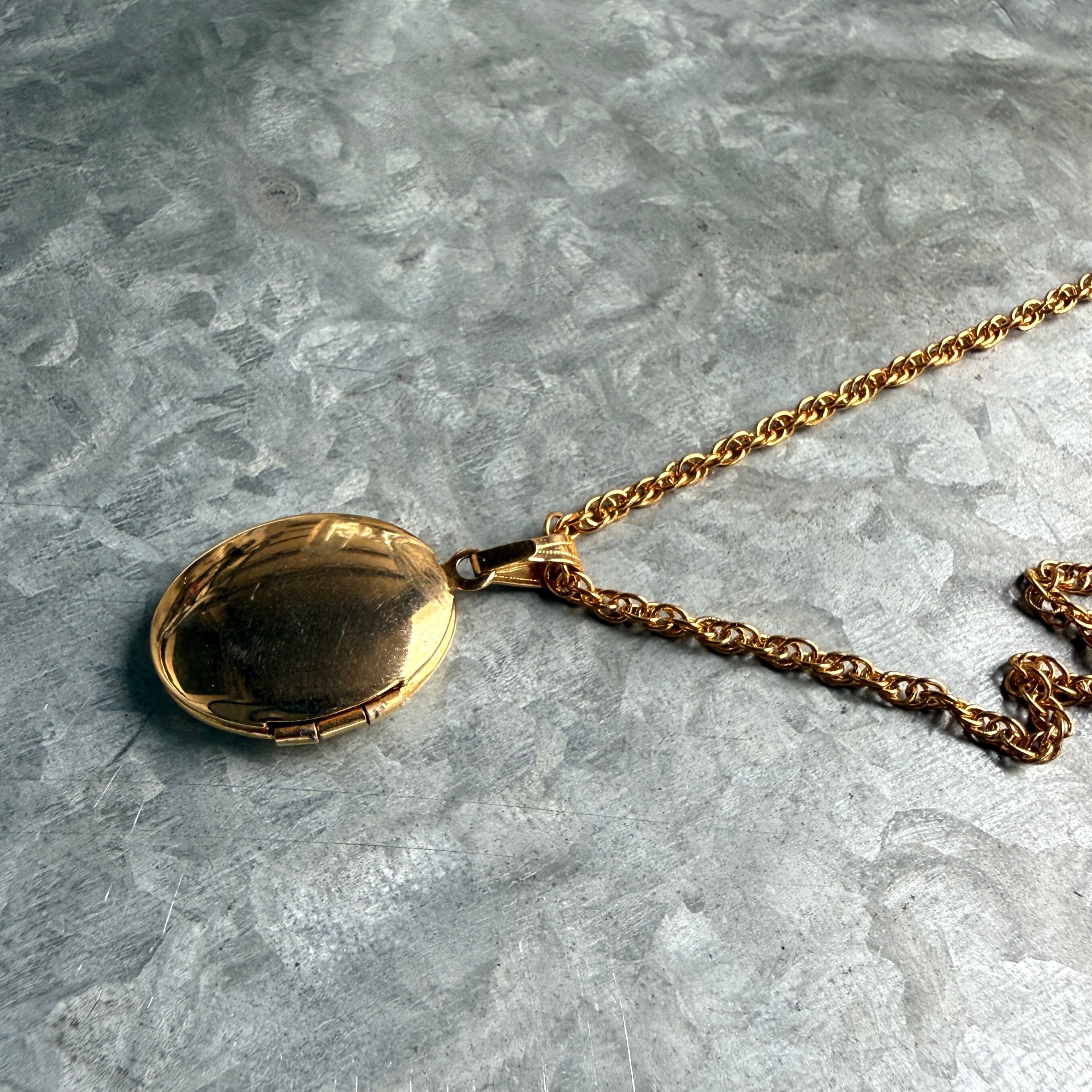 N301-ヴィンテージネックレス U.S.A. 1980s Gold Tone Oval Locket Pendant Necklace
