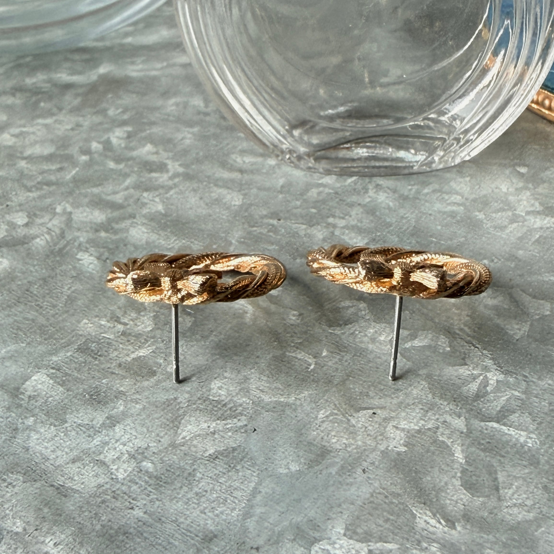 ゴールドトーンで現代のさまざまなのシーンの着こなしに映え、シンプル、カジュアルなスタイル、エレガントなどのアクセントとして、身につける人の個性を引き出してくれる素敵なヴィンテージピアスです。