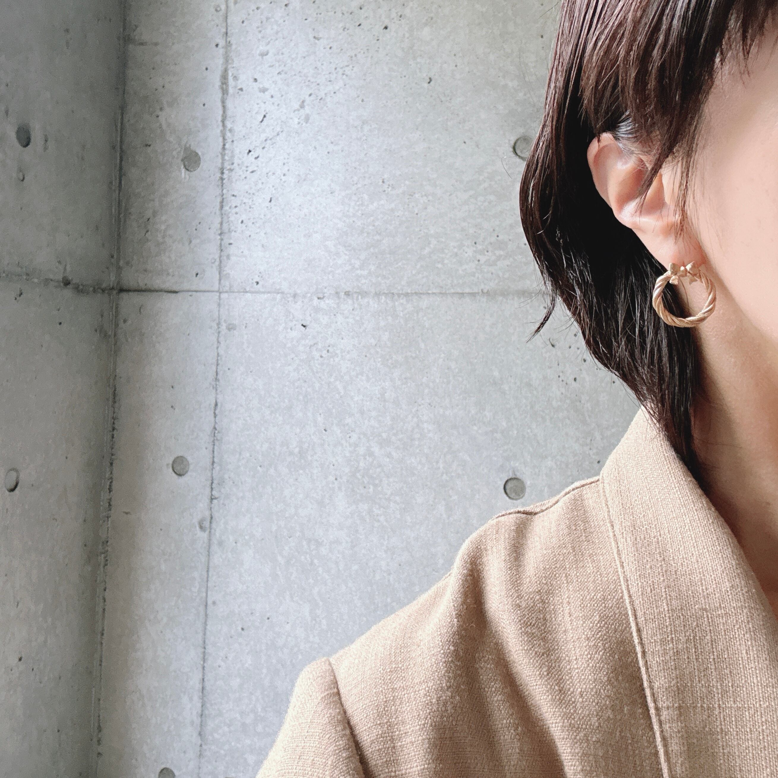 細身のフープと、程よいサイズ感が品よくまとまり、大人のかわいいをくすぐります。