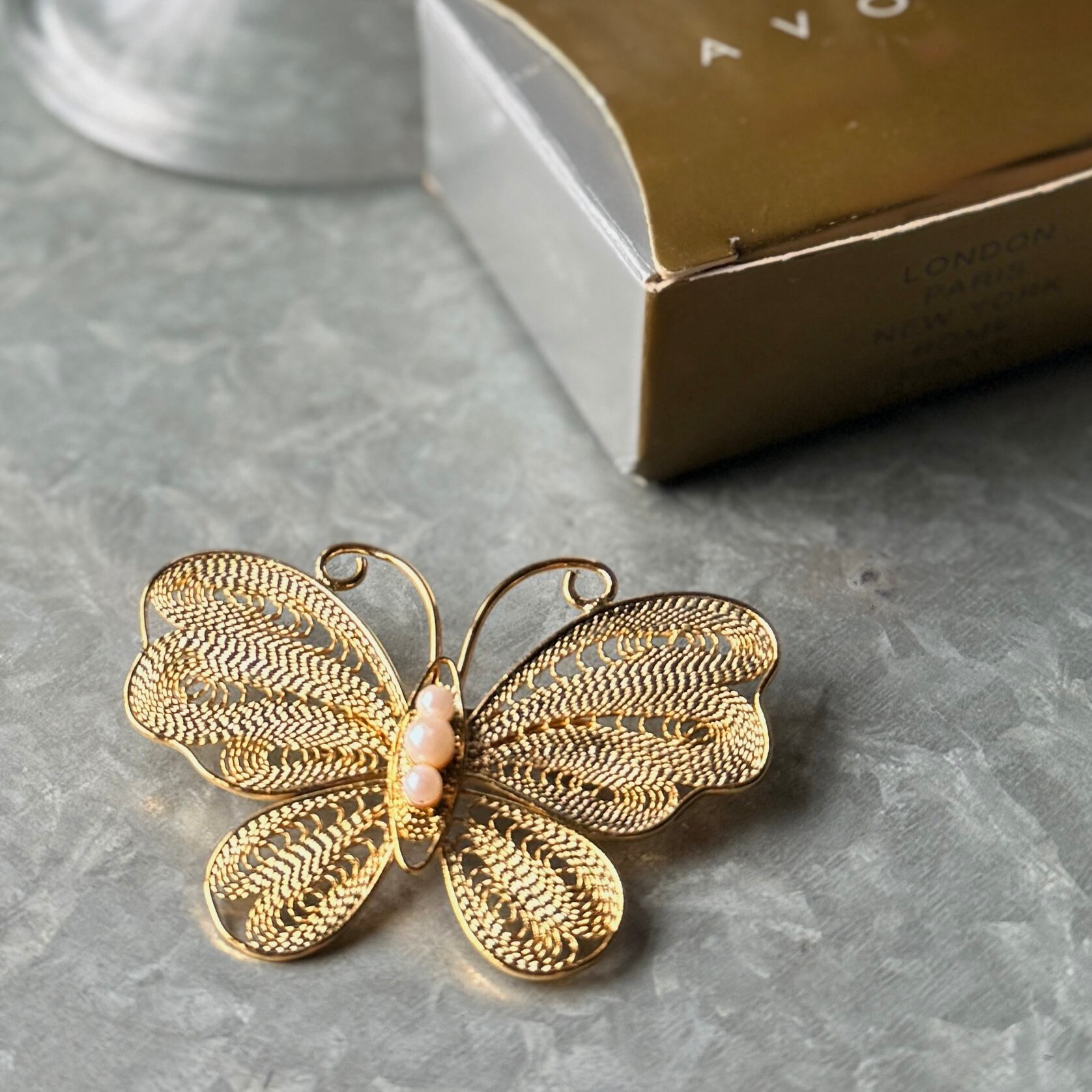 SCA61-【 AVON 】エイボン・ヴィンテージブローチ 1997 Filigree Butterfly Pin with Gold-Tone Pearl Brooch | eslup_boutique