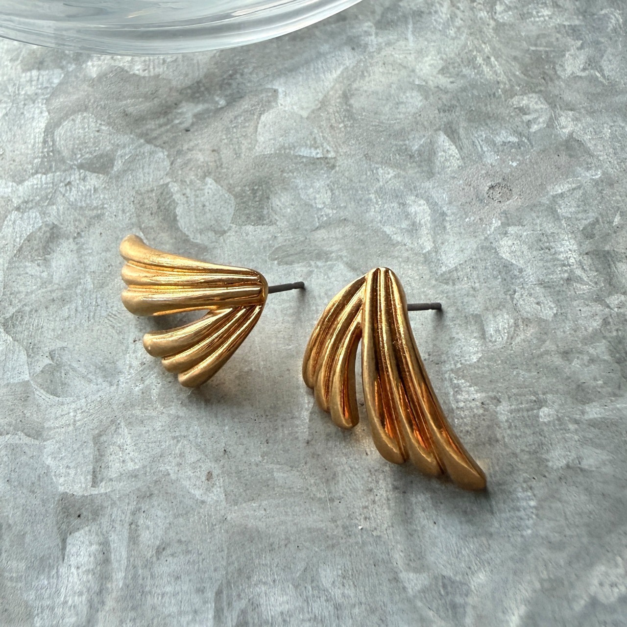 PA436-【 AVON 】エイボン・ヴィンテージピアス 1980〜90s Fluttering Ribbon Gold Tone Pierced Earrings | eslup_boutique