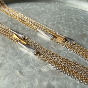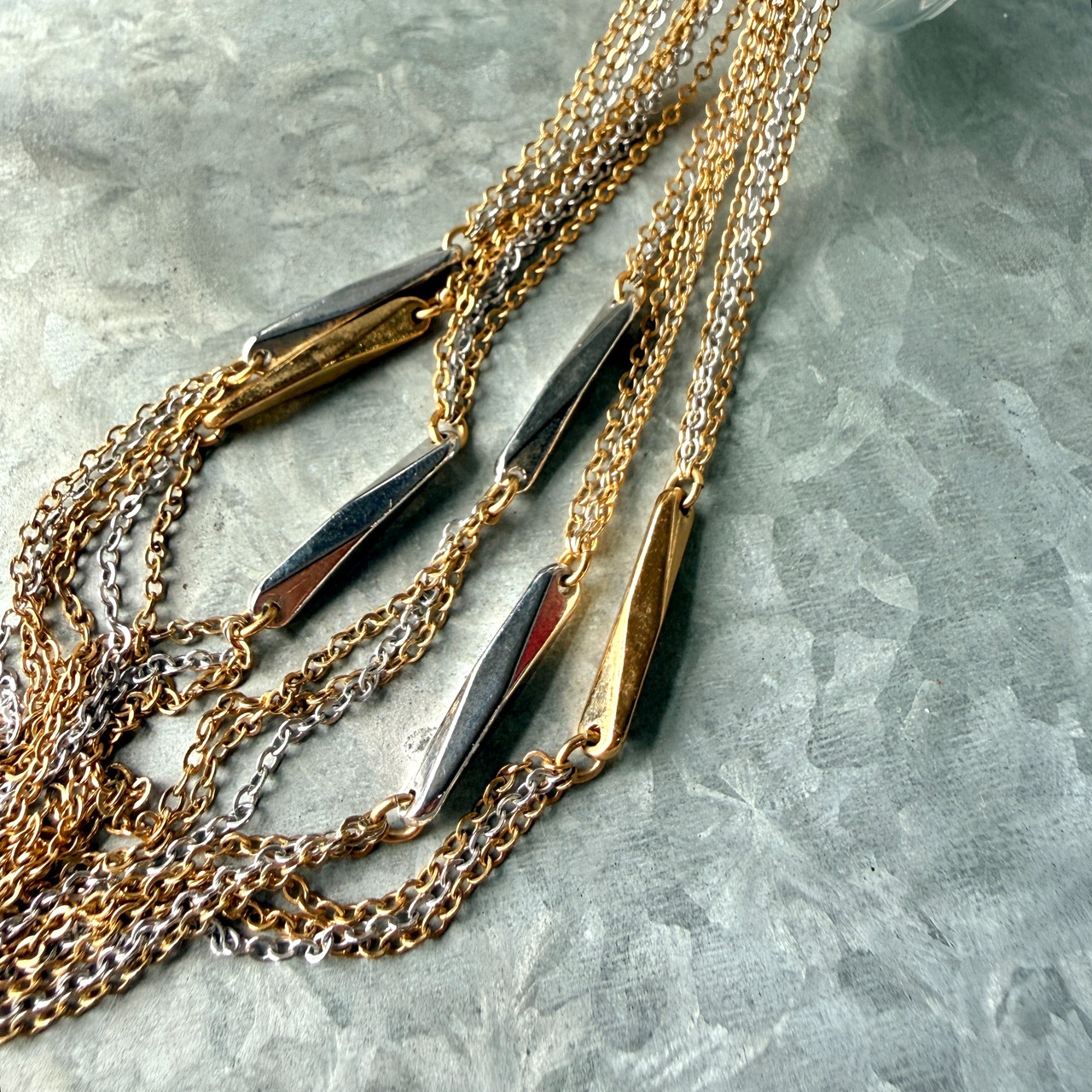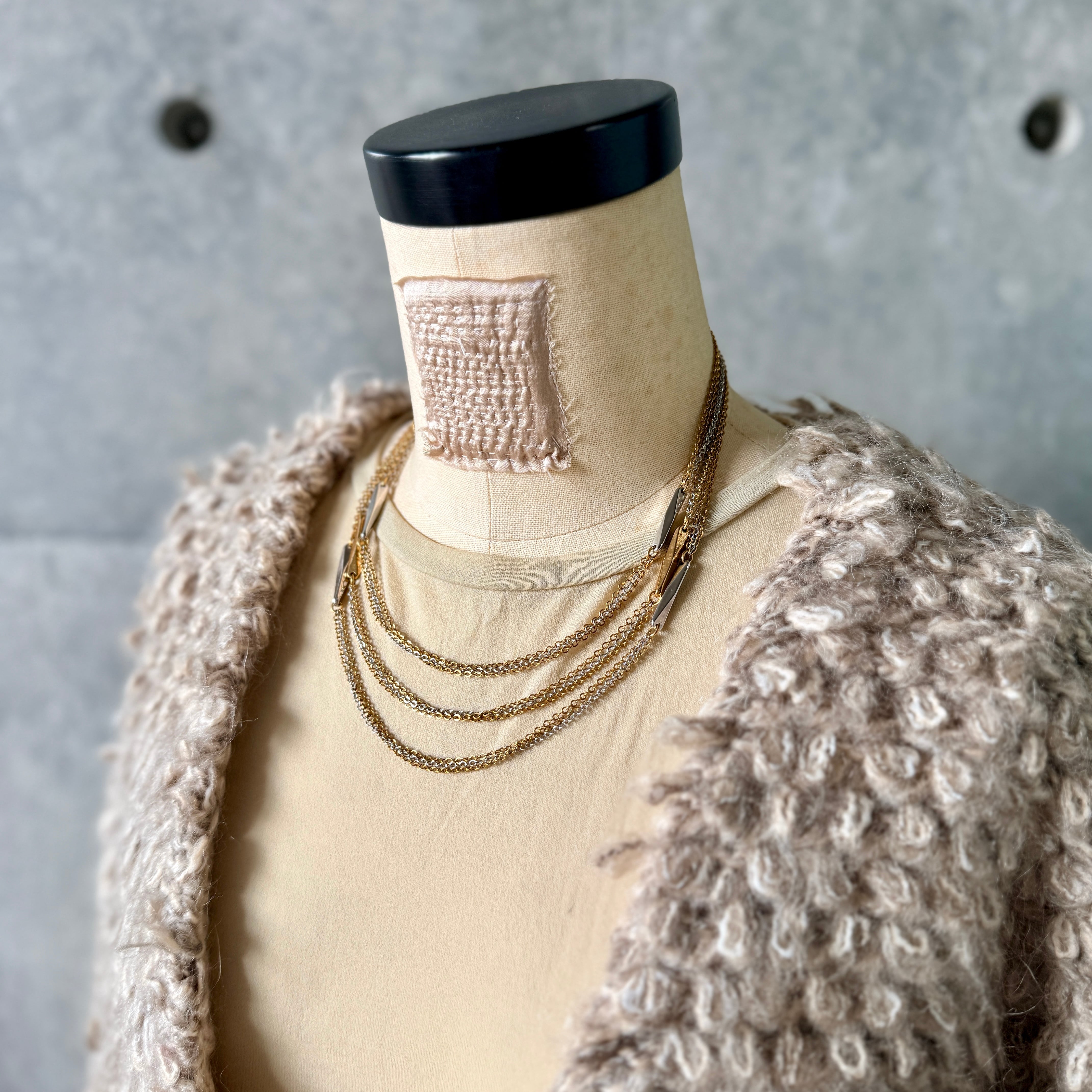 レイヤーになったチェーンが胸元を華やかに演出し、いつもの着こなしの雰囲気を一変させます。シンプル、カジュアルなスタイルや、エレガント、モードスタイルなど、身につけることで個性を引き出してくれる素敵なヴィンテージネックレスです。