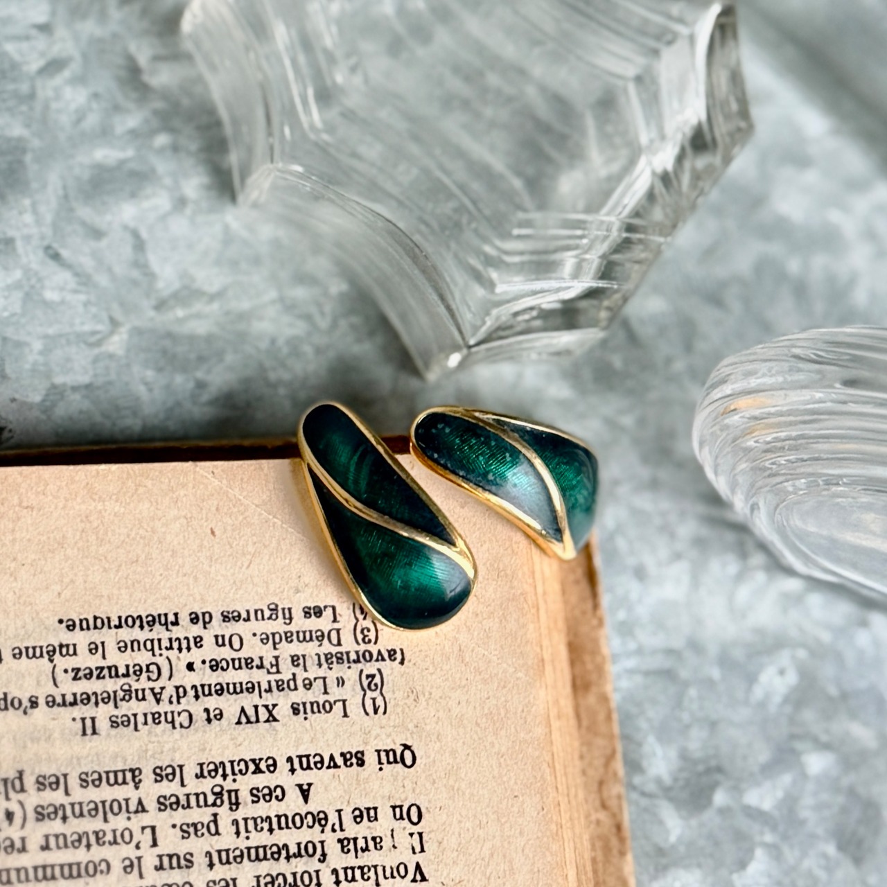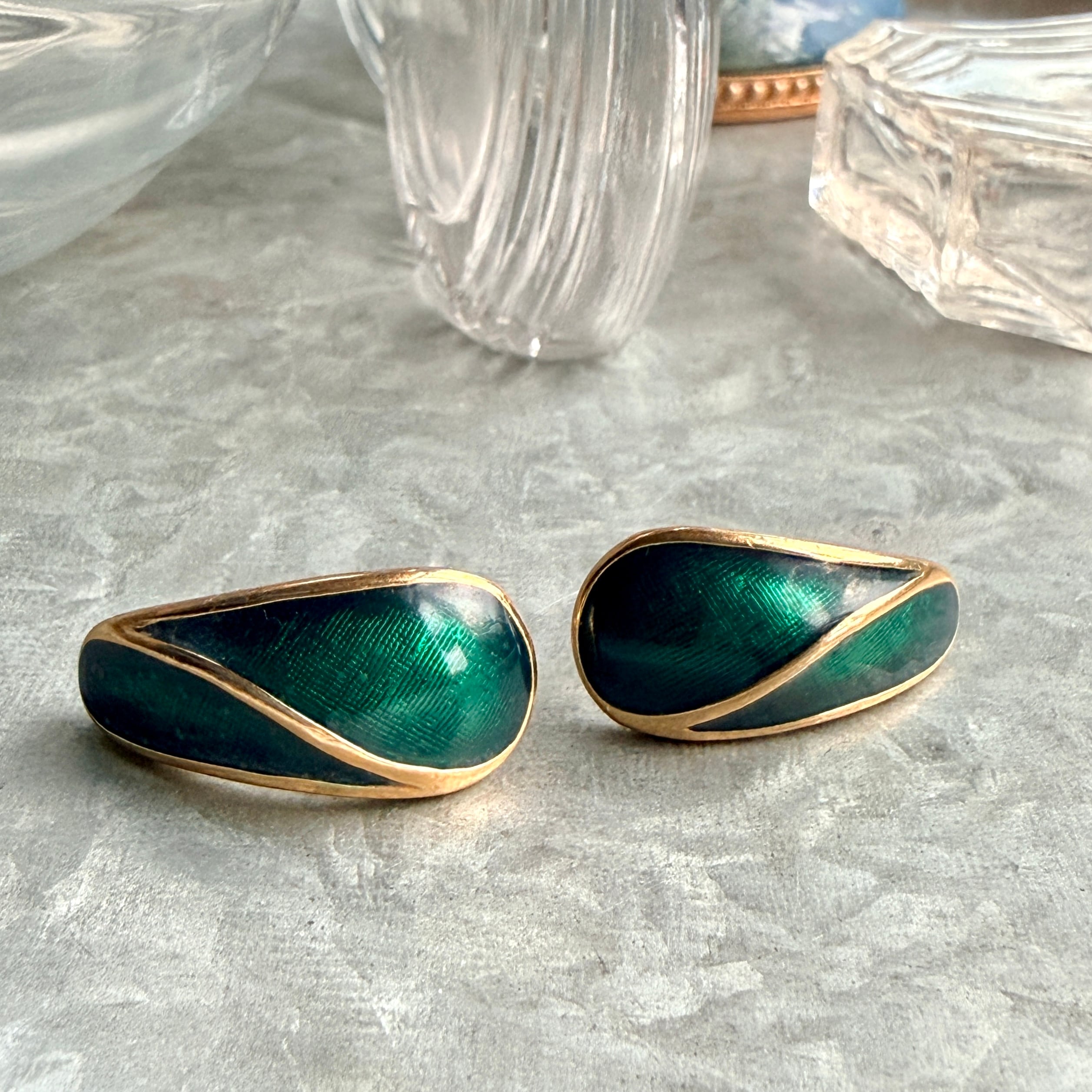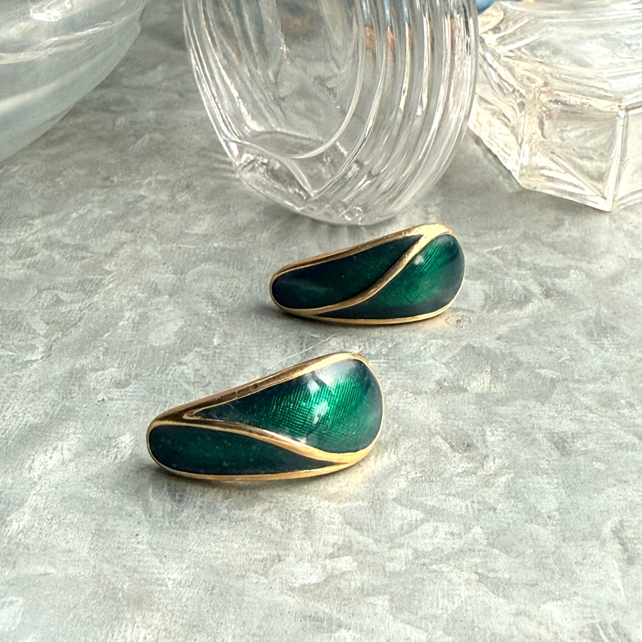 ゴールドトーンをベースにグリーンのエナメルペイントされたピアス。