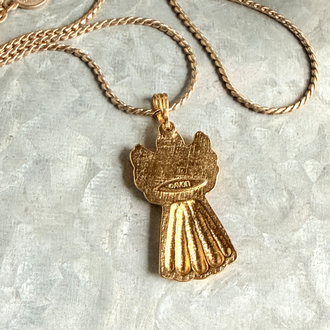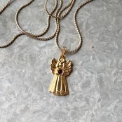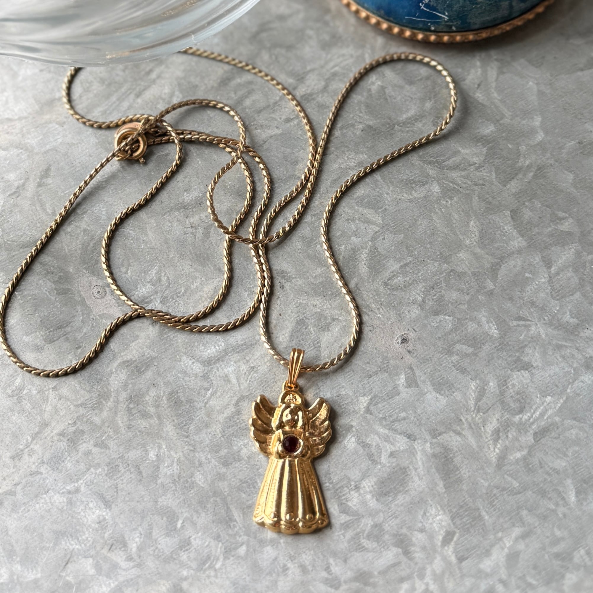 NA144-【 AVON 】エイボン・ヴィンテージネックレス 1994 Estate Goldtone Angel Pendant Necklace with Ruby Color Rhinestone | eslup_boutique