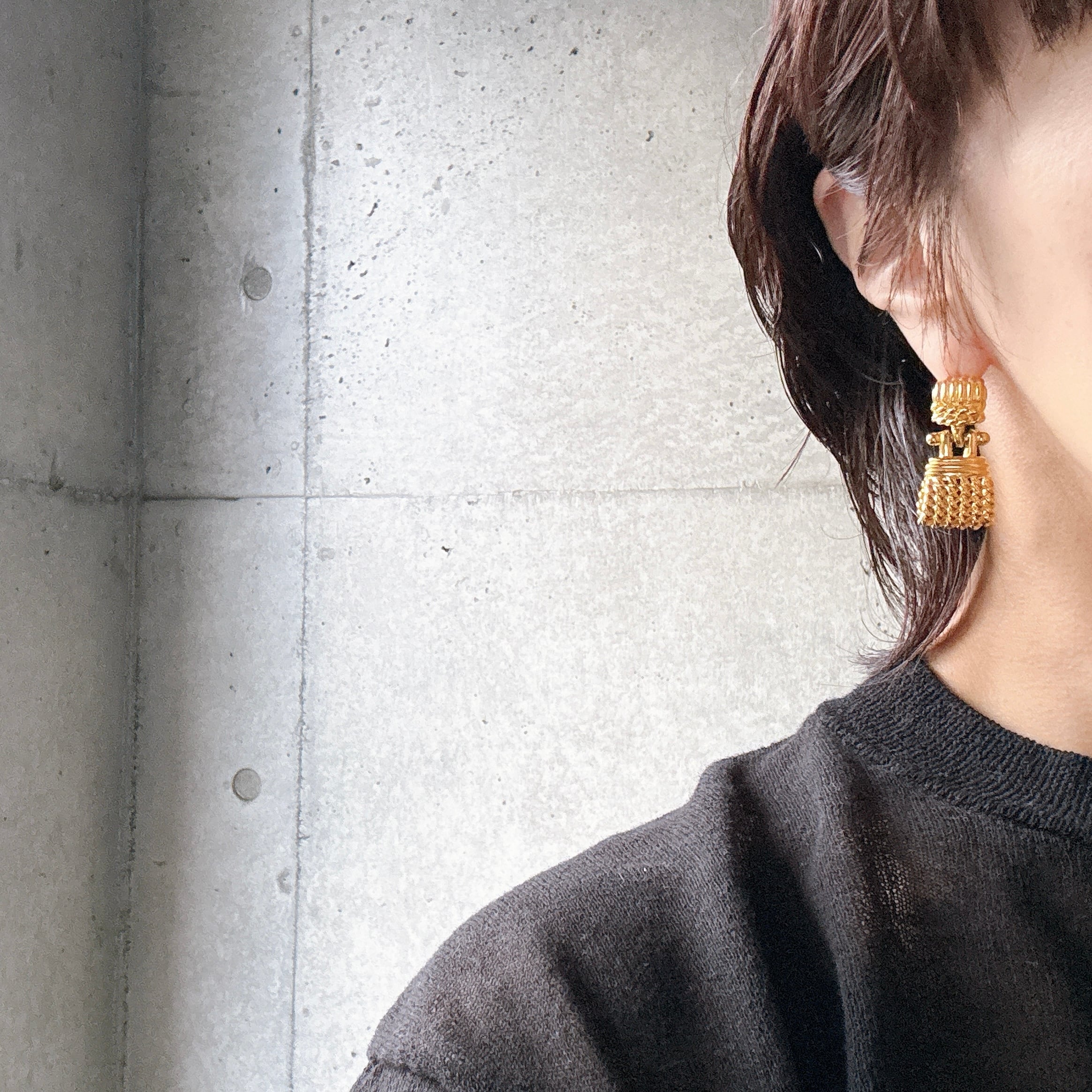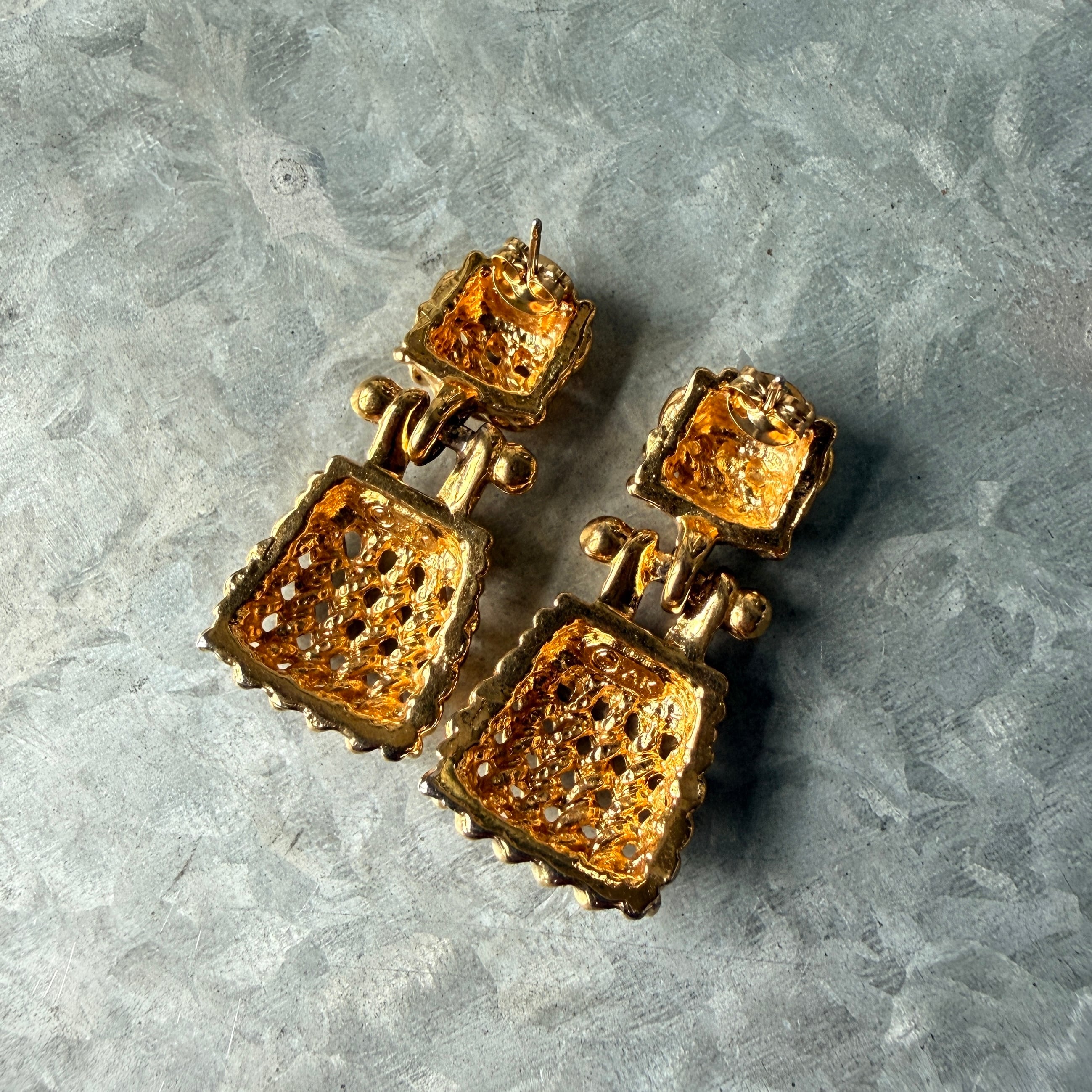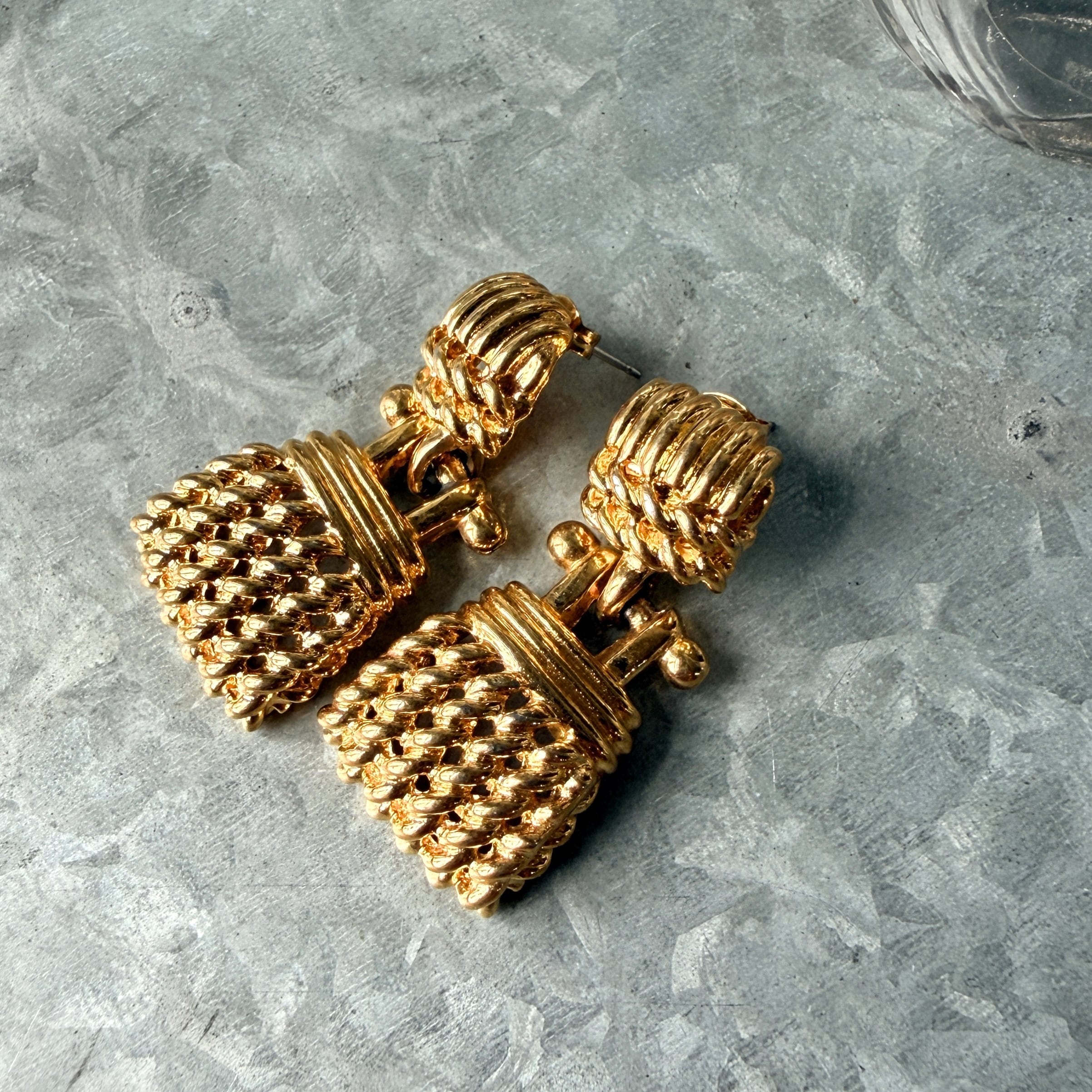 PAK2-【ANNE KLEIN】アンクライン・ヴィンテージピアス 1980s Gold Tone Openwork Mesh Charm Dangle Pierced Earring | eslup_boutique