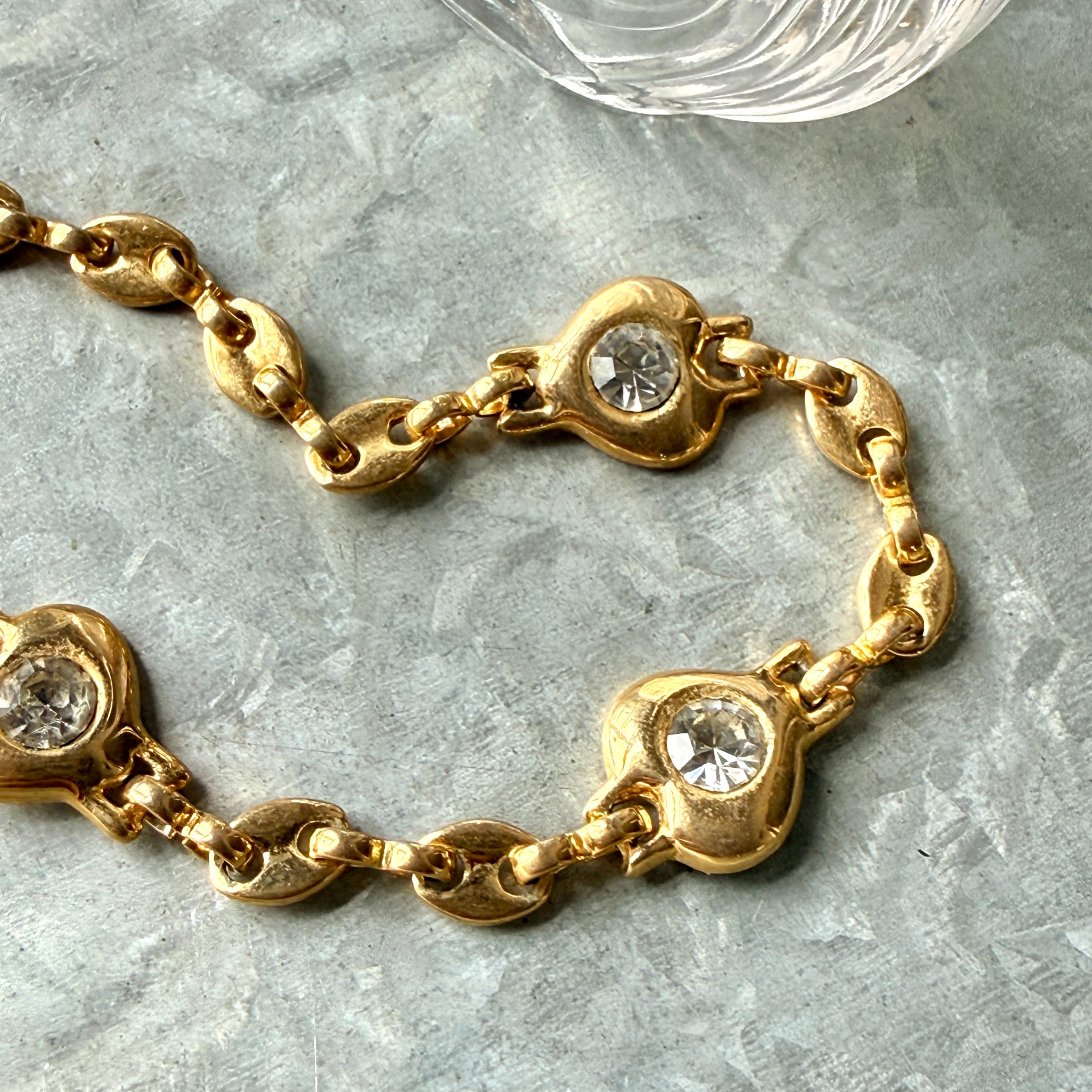 N300-ヴィンテージネックレス U.S.A. 1980s Heart & Coffee Beans Rhinestone Gold Tone Short Necklace | eslup_boutique