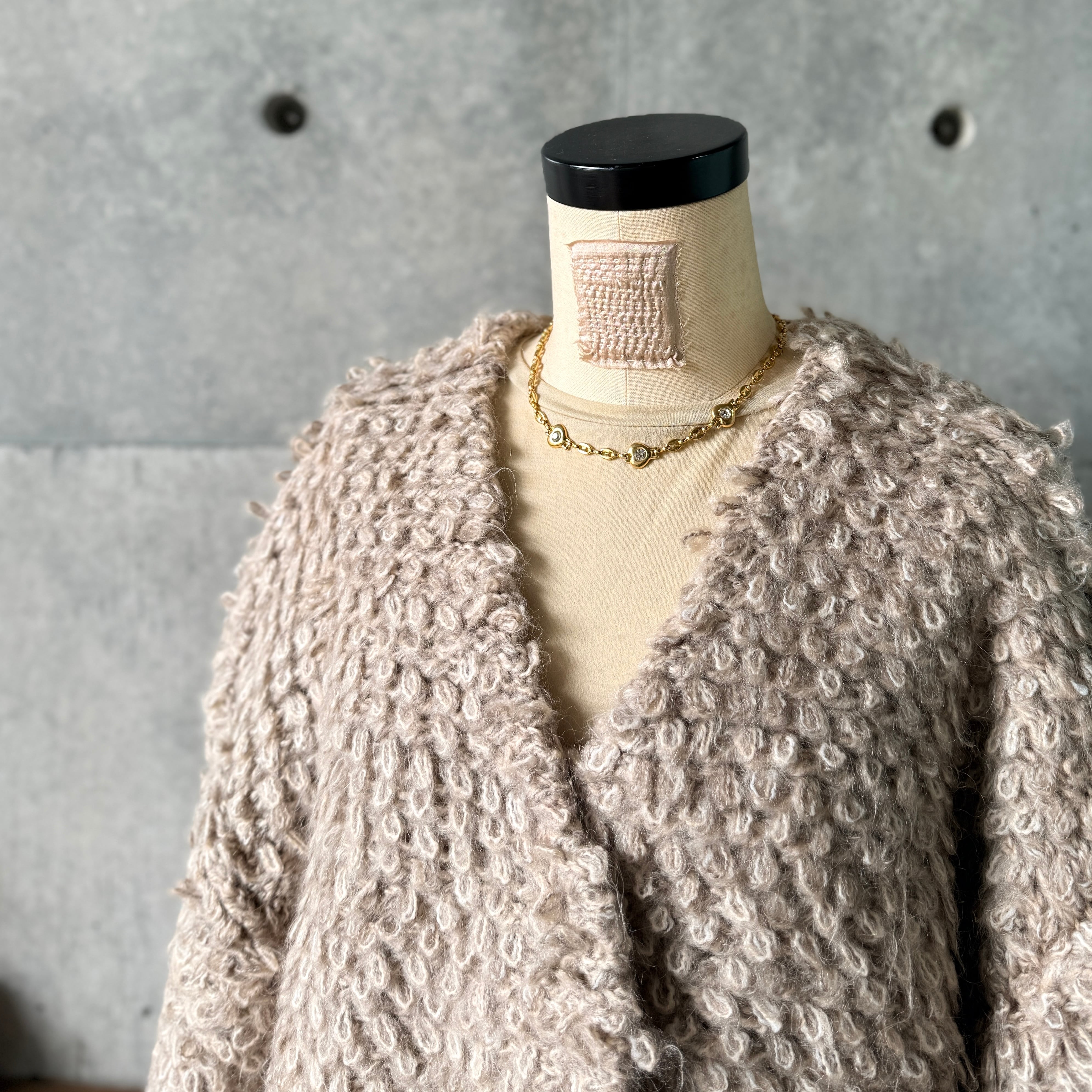 ショート丈でお顔周りを華やかに演出しながら、個性あるアクセントが着こなしの雰囲気を一変させてくれます。