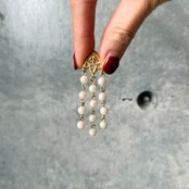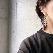 フェイクパールがフリンジ状にぶら下がるゴールドトーンピアス。