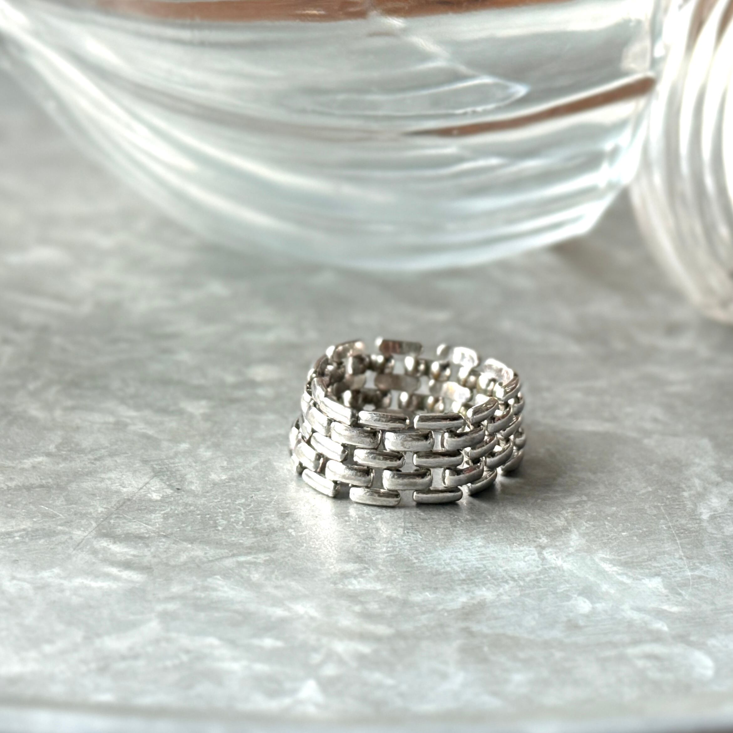 RA144-【 AVON 】エイボン・ヴィンテージリング 1980〜90's Silver Tone Wide Chain Link Ring