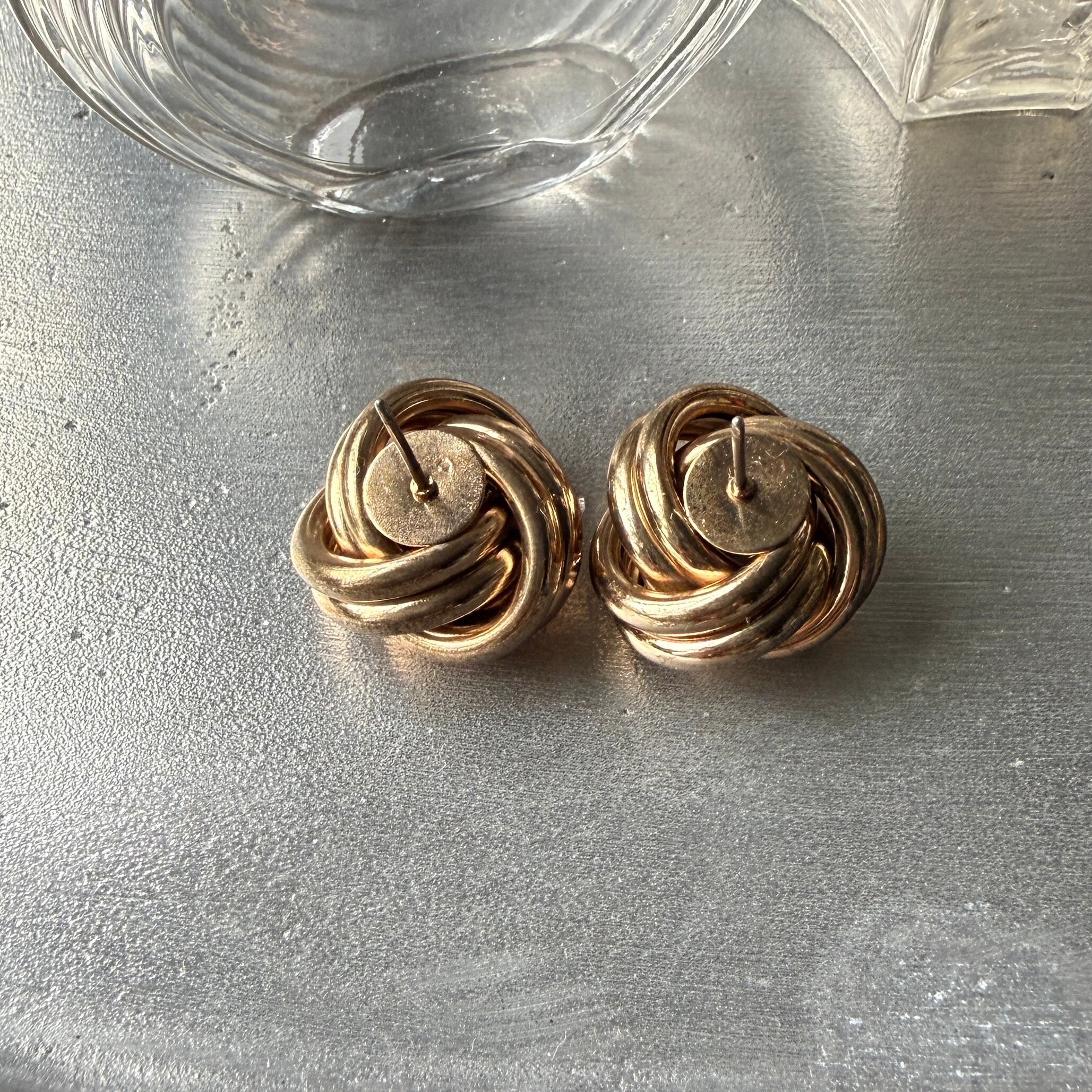 P731-ヴィンテージピアス U.S.A. 1980's Gold Tone Voluminous Knot Pierced Earrings