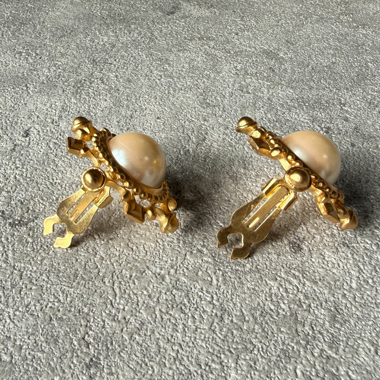 Y1202-ヴィンテージイヤリング U.S.A. 1970〜80's European Matte Gold Tone Faux Pearl Clip Earrings | eslup_boutique
