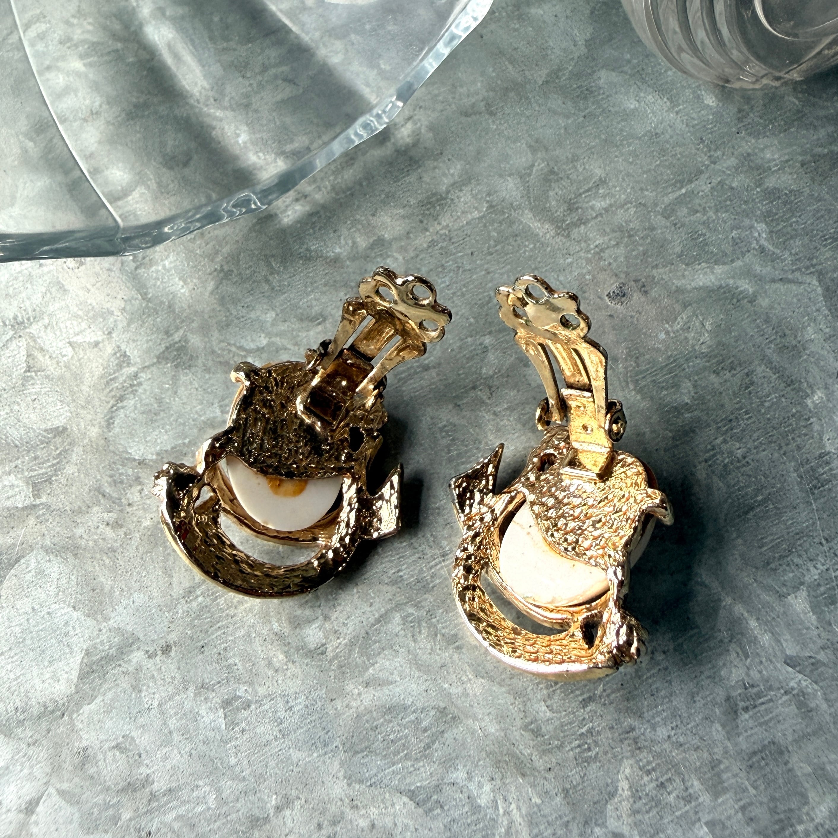 YS94-【 Sarah coventry 】サラコベントリー・ヴィンテージイヤリング 1950〜60's White Cabochon Gold Tone Clip Earrings | eslup_boutique