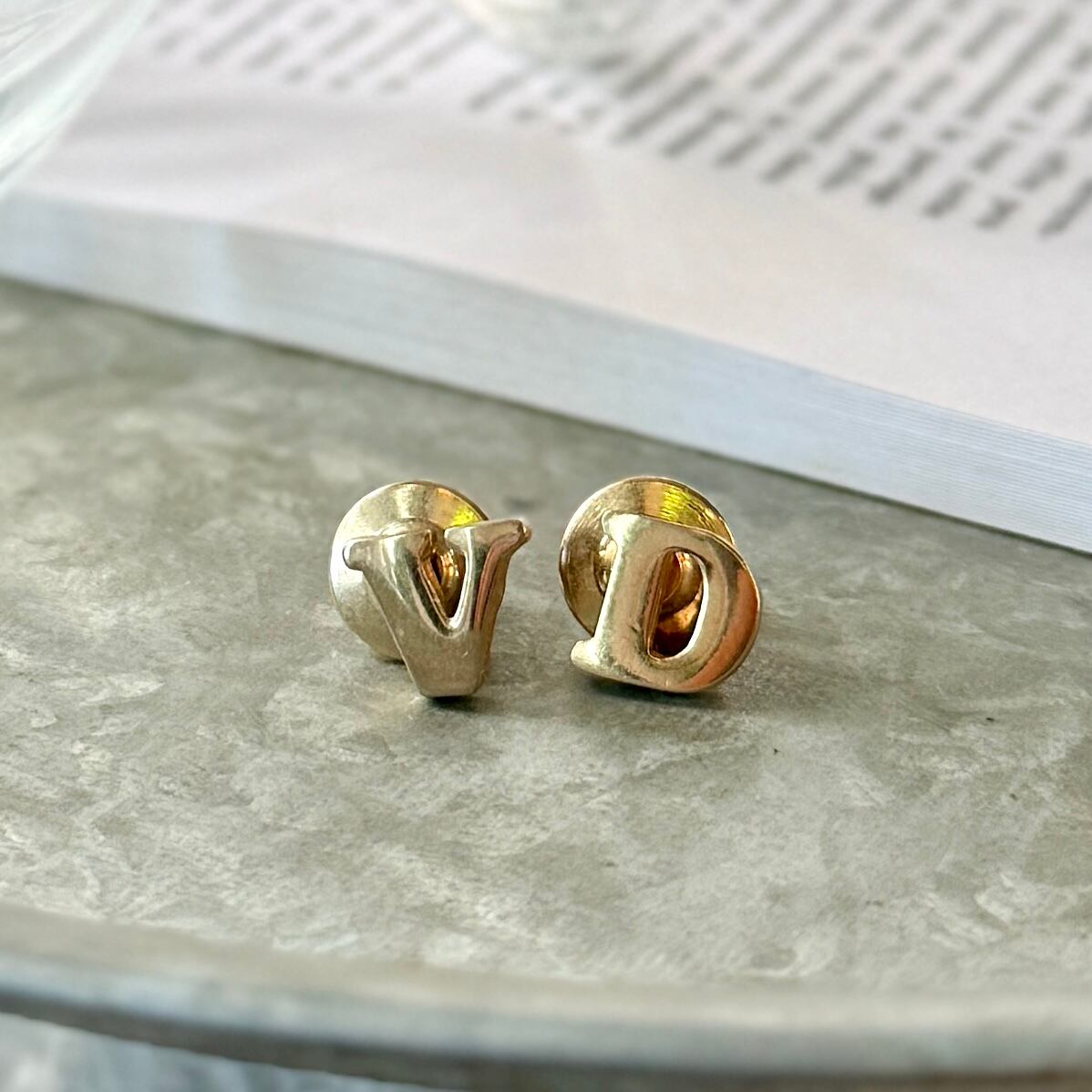 イニシャル"D"を模ったゴールドトーンブローチピン。