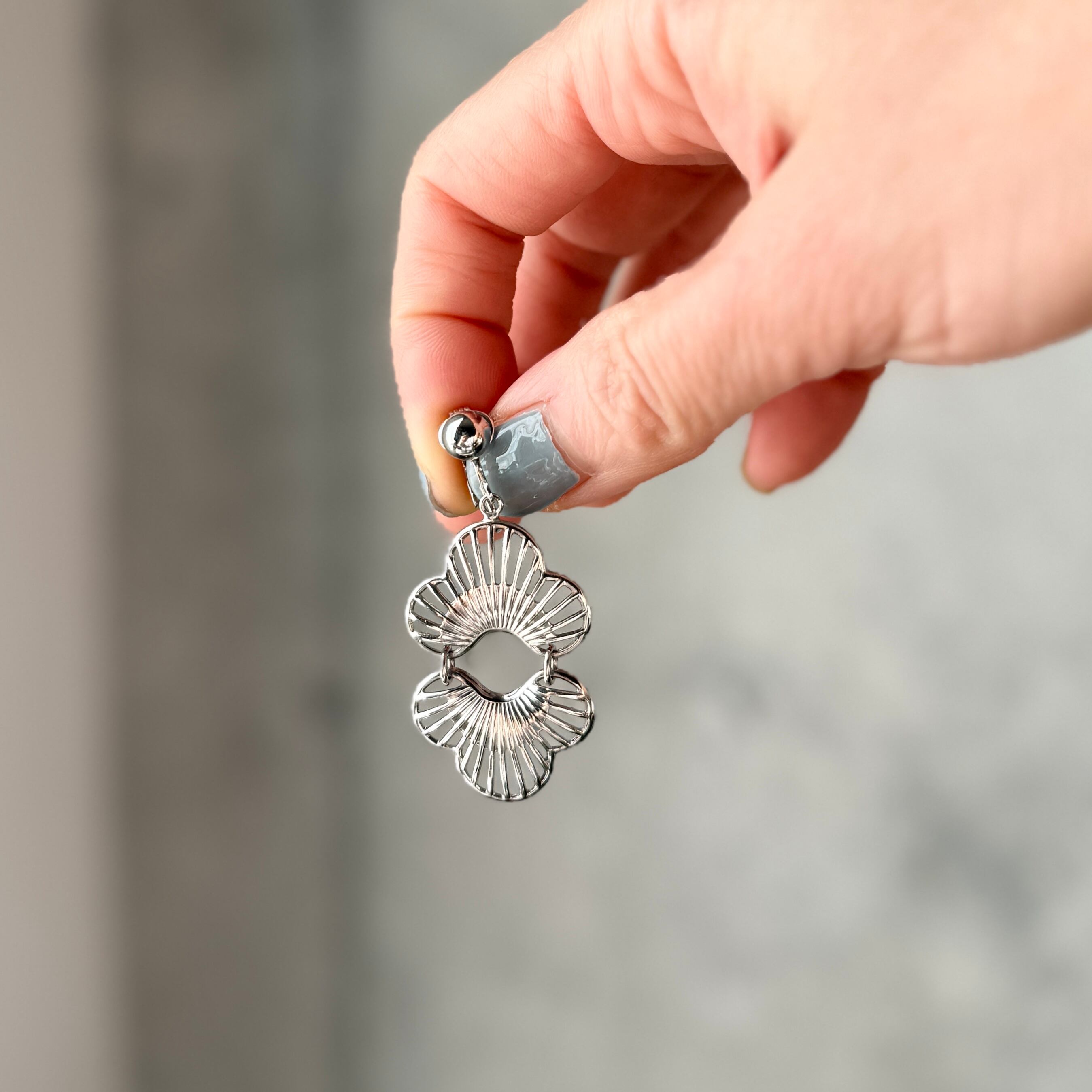 "Lotus Blossom"とタイトルの付いた、シルバートーンダングルイヤリング。