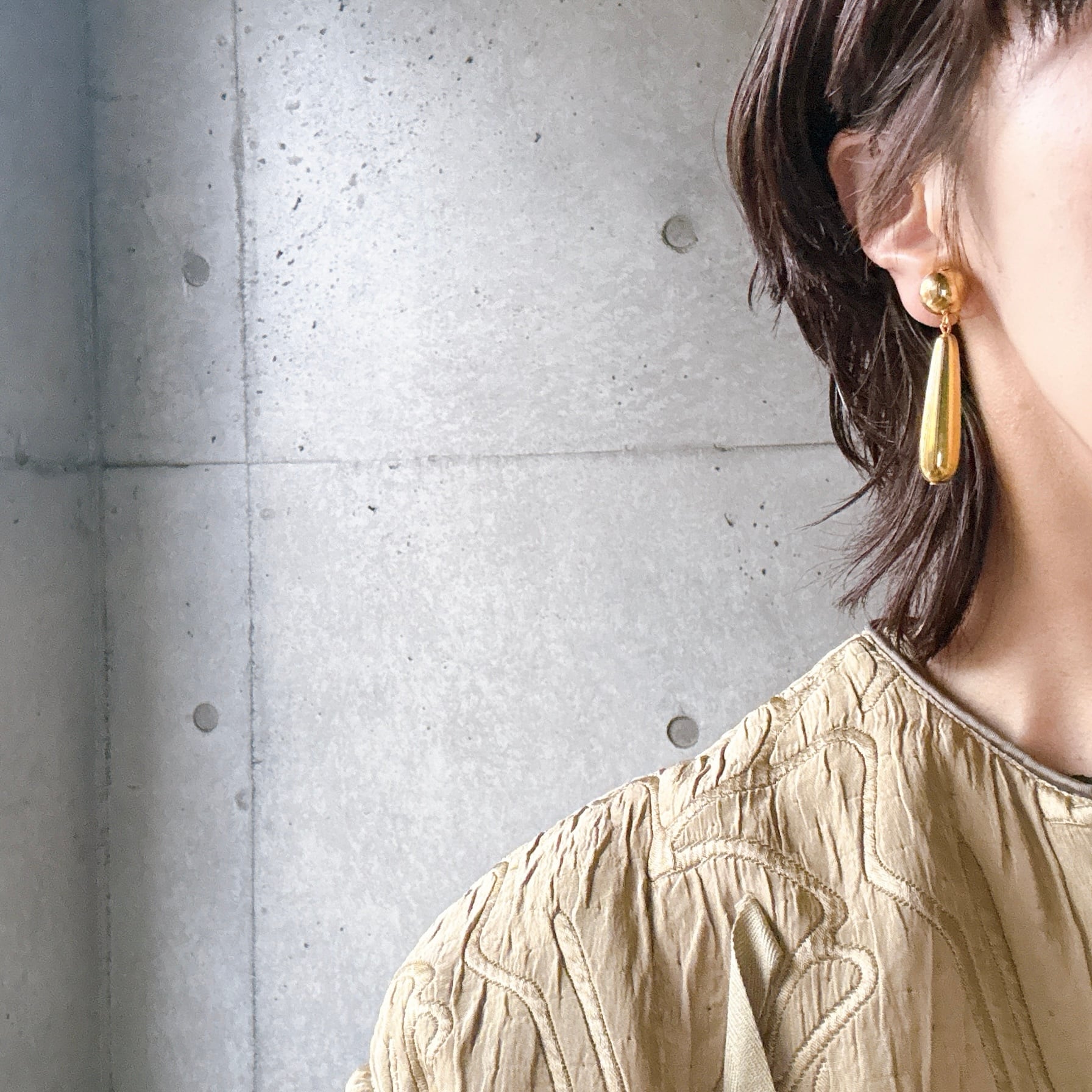 インパクトのあるイヤリングで、身につけることで着こなしの主役となりうるアクセントが光ります。