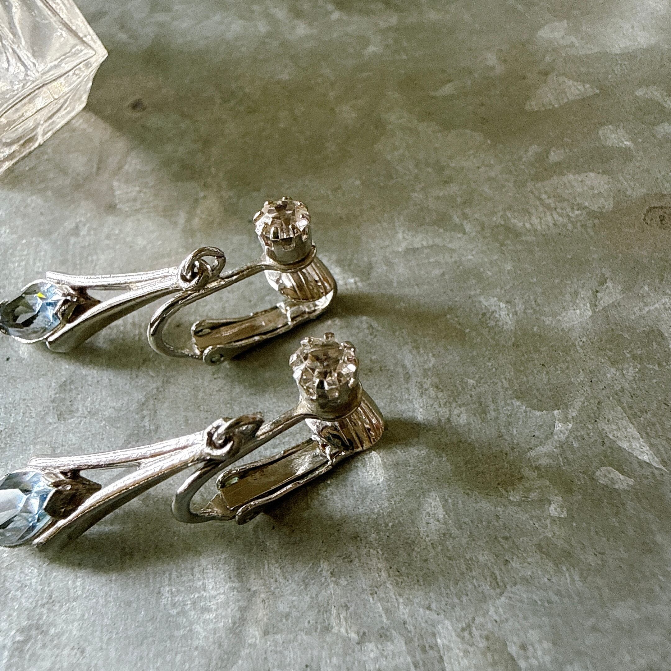 YA202-【 AVON 】エイボン・ヴィンテージイヤリング 1976 Blue Marquis Rhinestone Deco Style Drop Earrings
