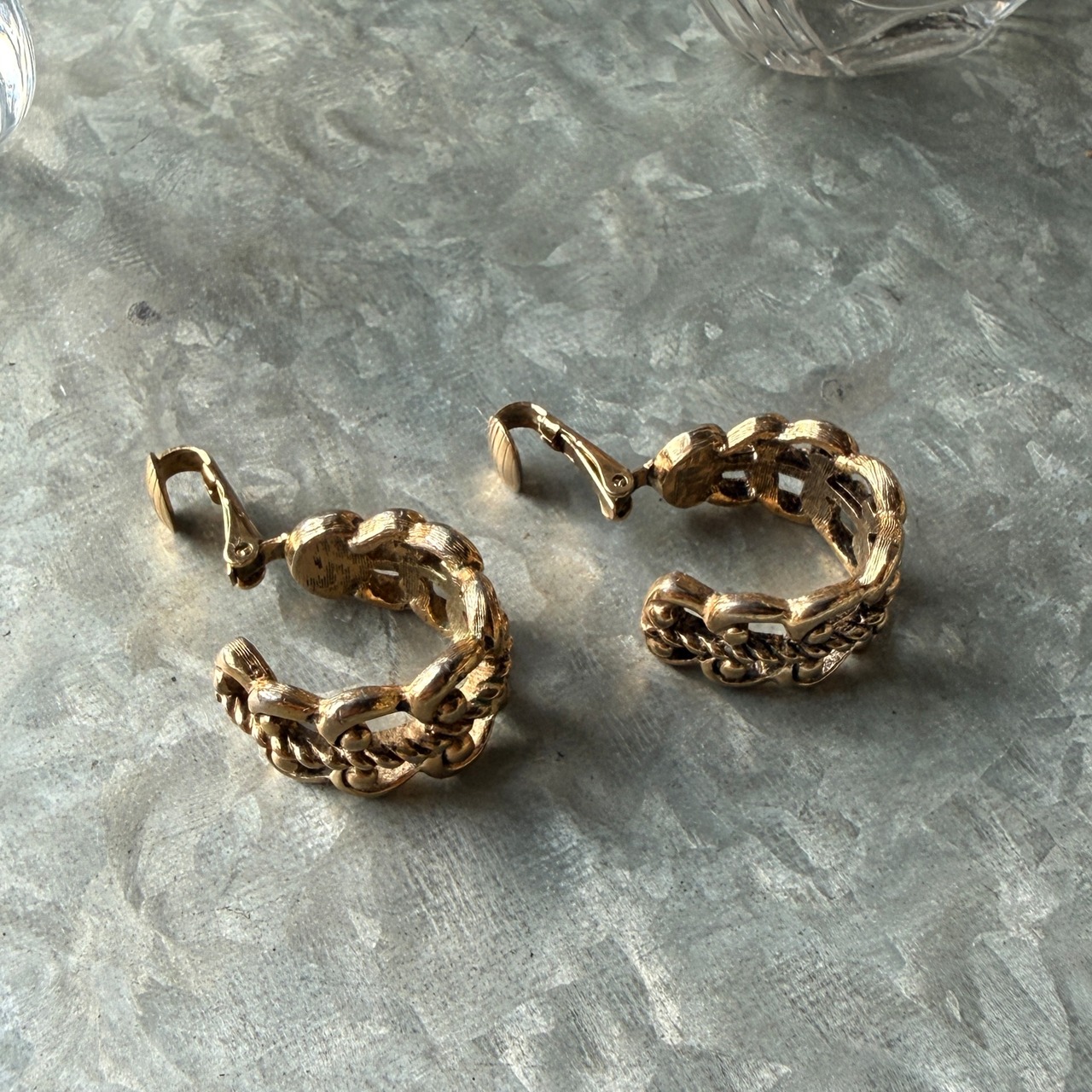 YA205-【 AVON 】エイボン・ヴィンテージイヤリング 1972 "French Filigree" Gold Tone Scroll and Rope Clip Earrings