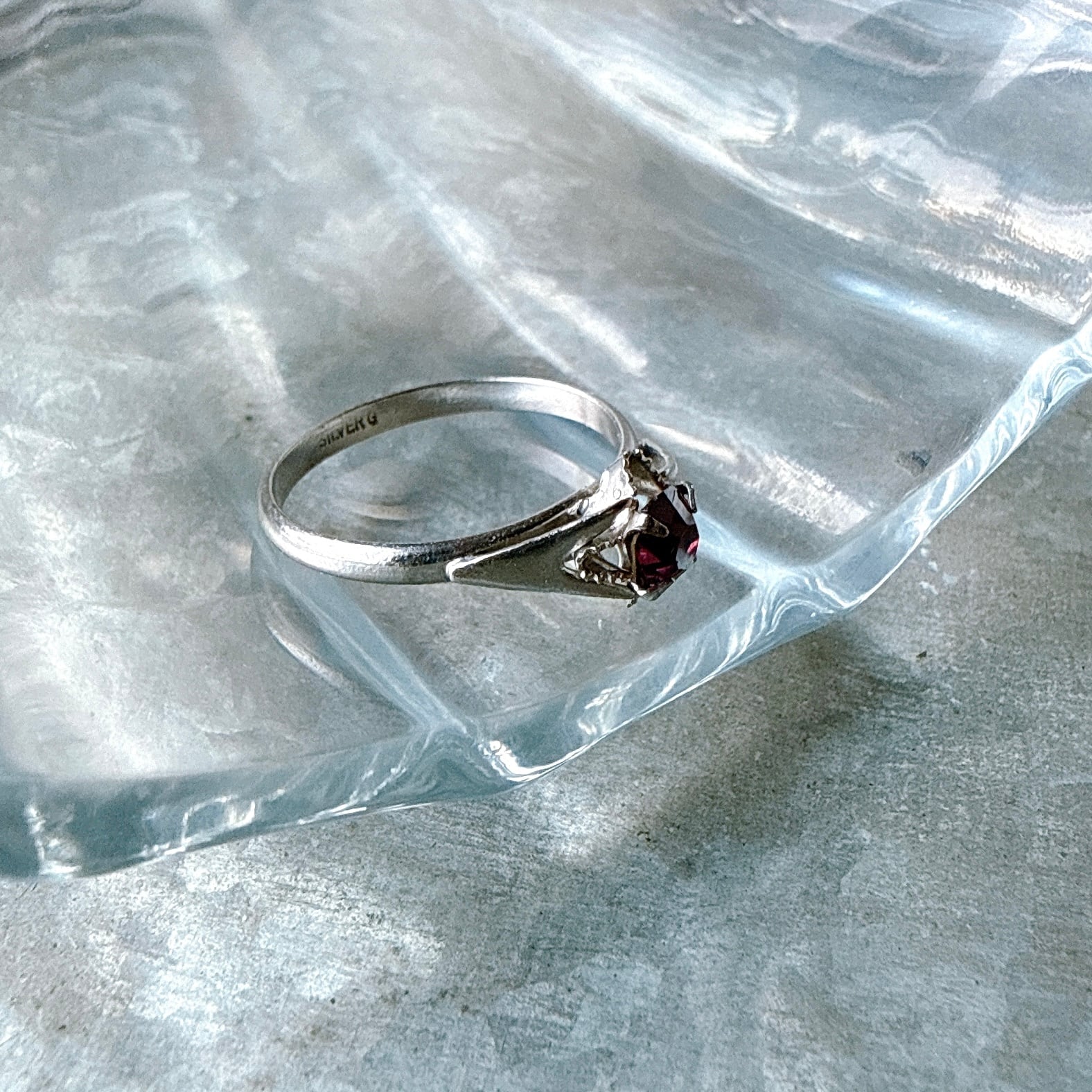 アメジストカラーカットグラスが美しいシルバートーンリング。