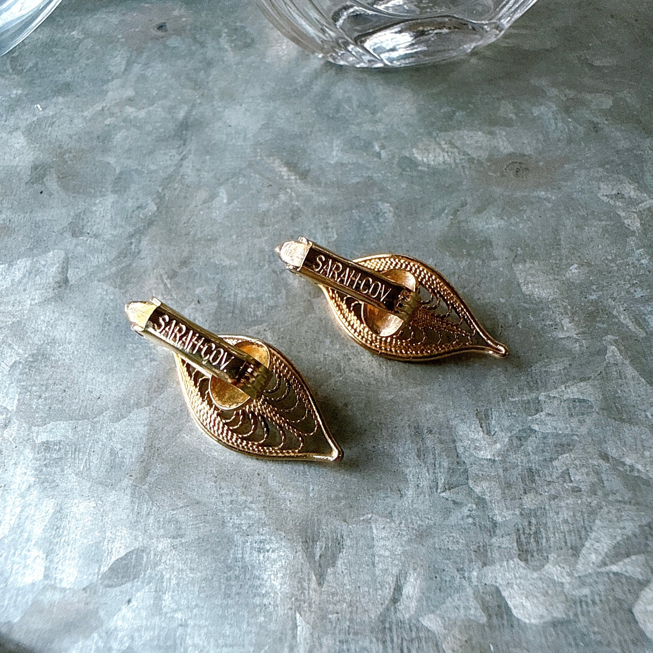 YS97-【 Sarah coventry 】サラコベントリー・ヴィンテージイヤリング 1966 "Serene" Gold Plated Filigree & Pearl Clip On Earrings | eslup_boutique