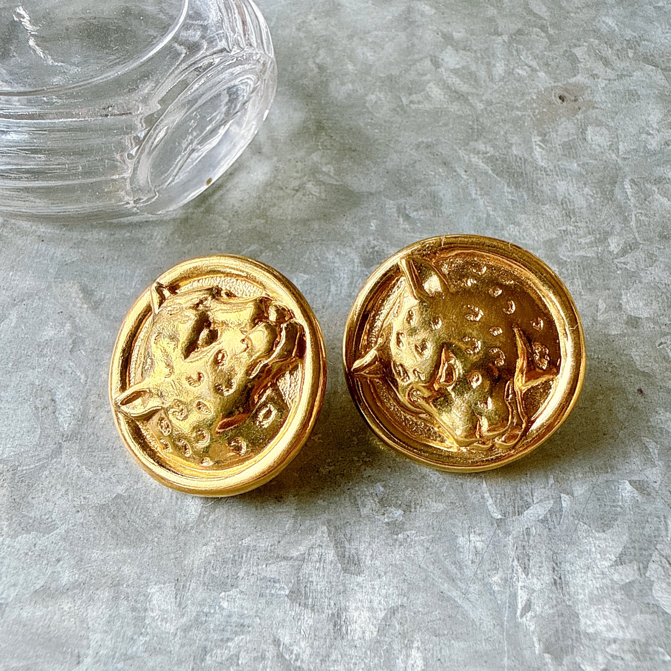 YA212-【 AVON 】エイボン・ヴィンテージイヤリング 1980's Panther Gold-Tone Leopard Medallion Clip-On Earrings | eslup_boutique