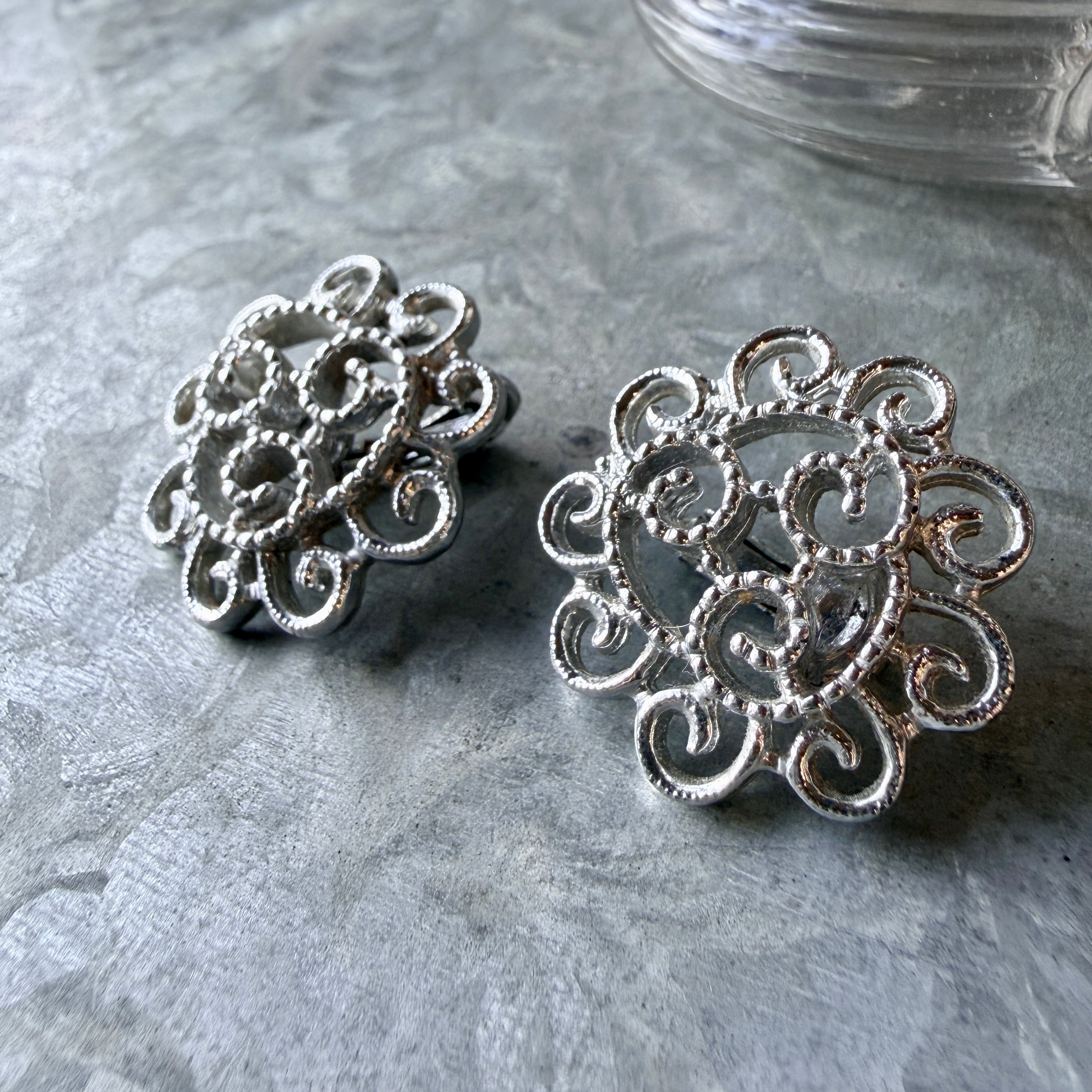 YS98-【 Sarah coventry 】サラコベントリー・ヴィンテージイヤリング 1971 'Silver Mist' Silver Tone Swirl Filigree Clip On Earrings | eslup_boutique