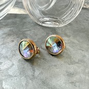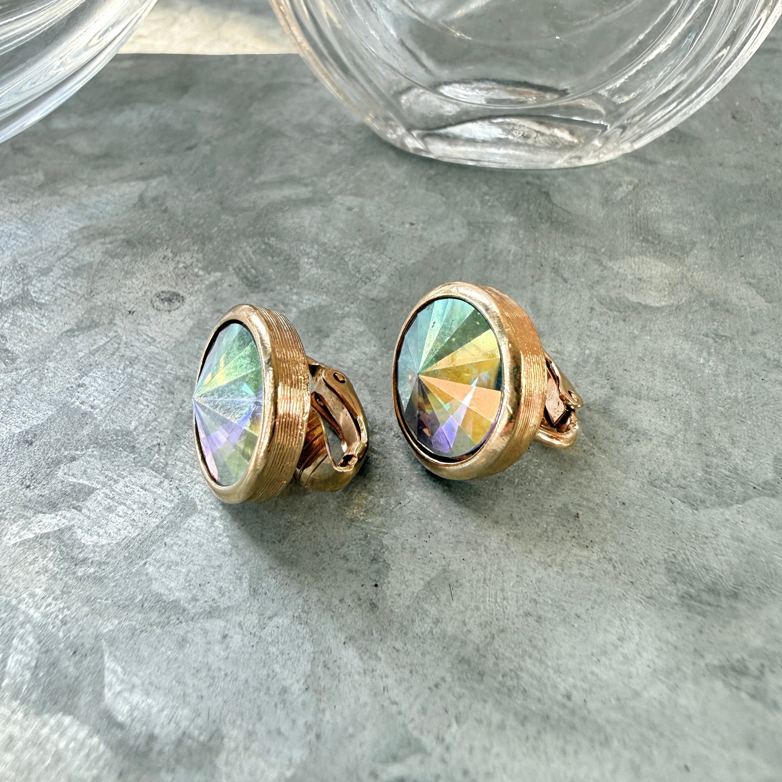 オーロラカラーのクリスタルが美しいゴールドトーンクリップイヤリング。